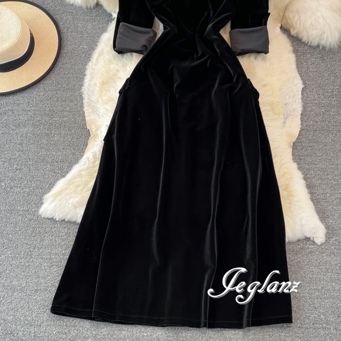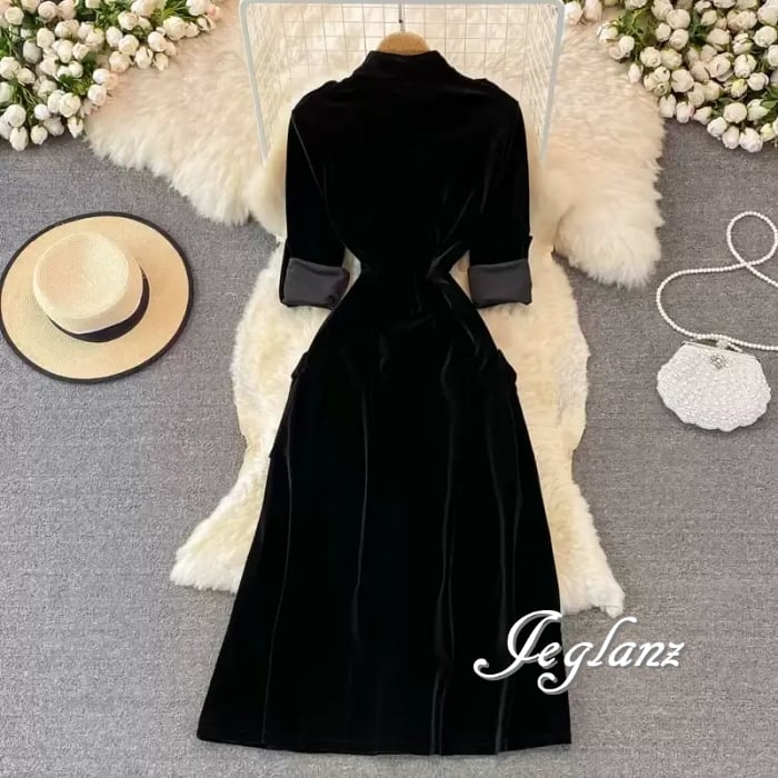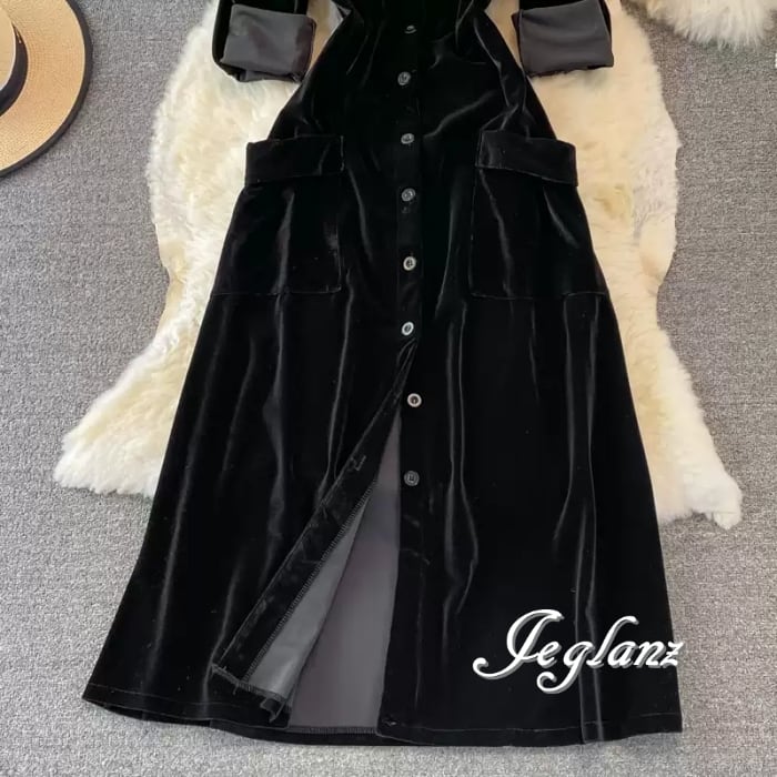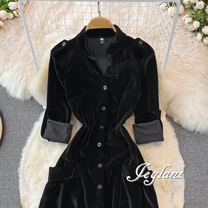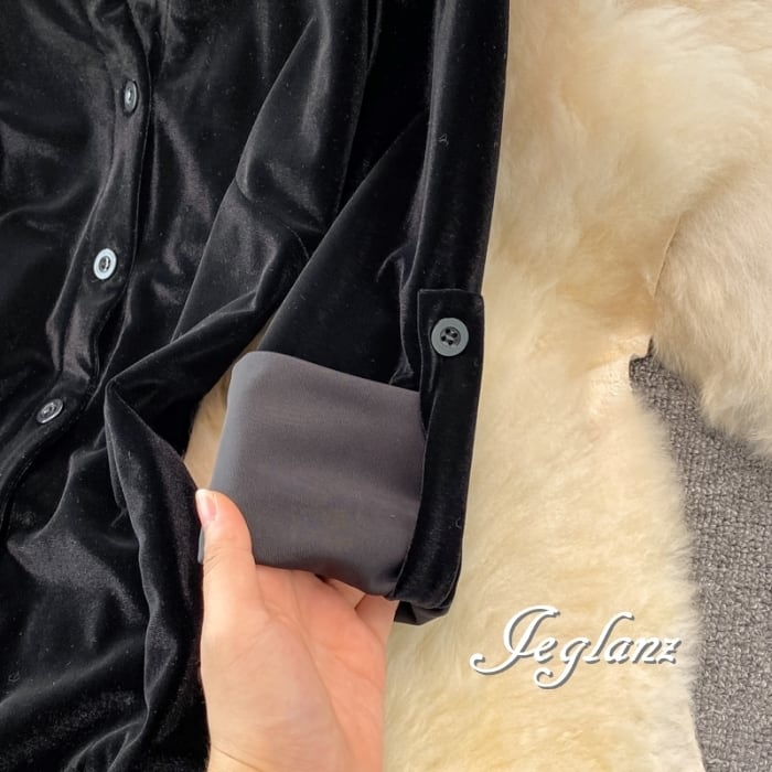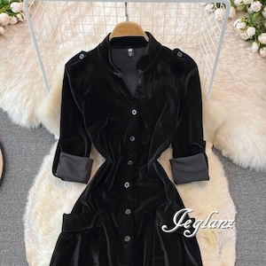 ベルベット調 シャツ ワンピース ドレス クラシカル 光沢感 上品(MB493)δ☆