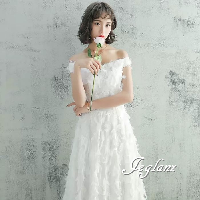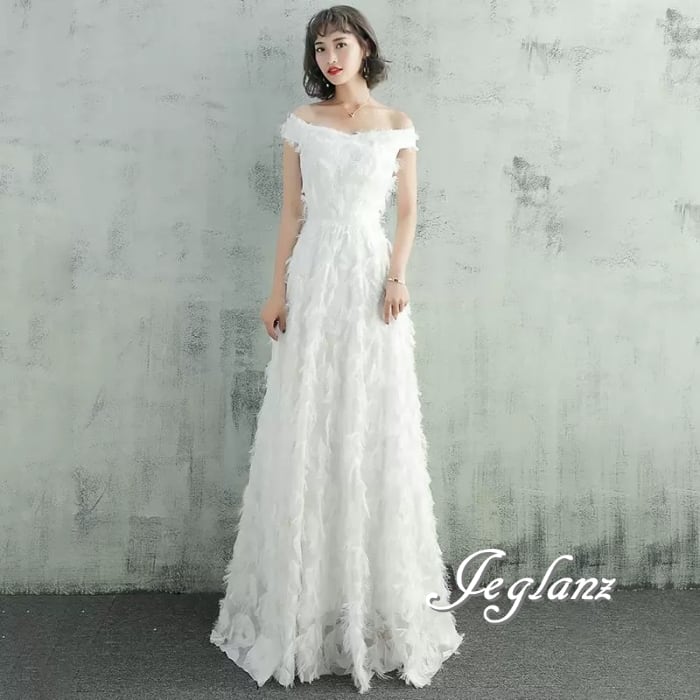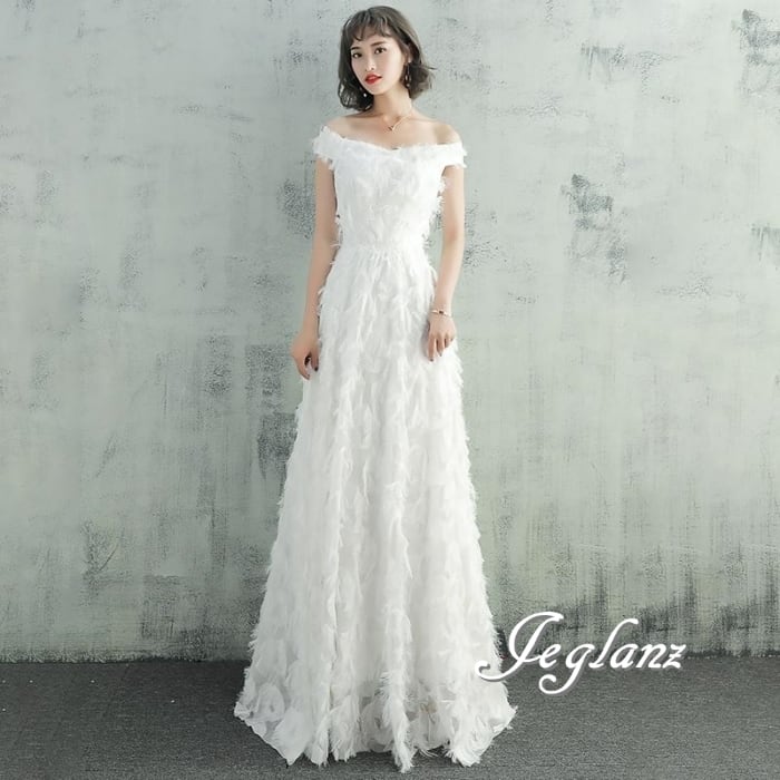 ウエディング カラードレス フェザー オフショル ファンシー 2色(MB494)ο☆