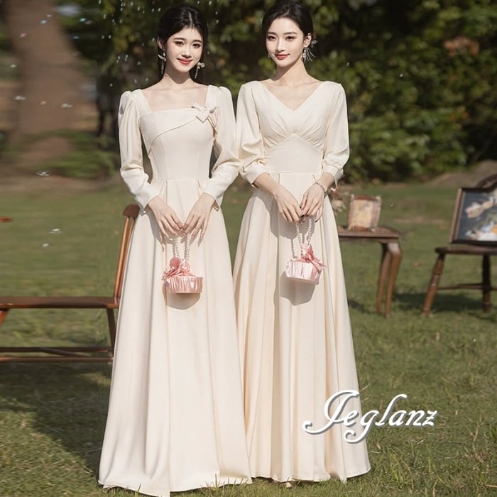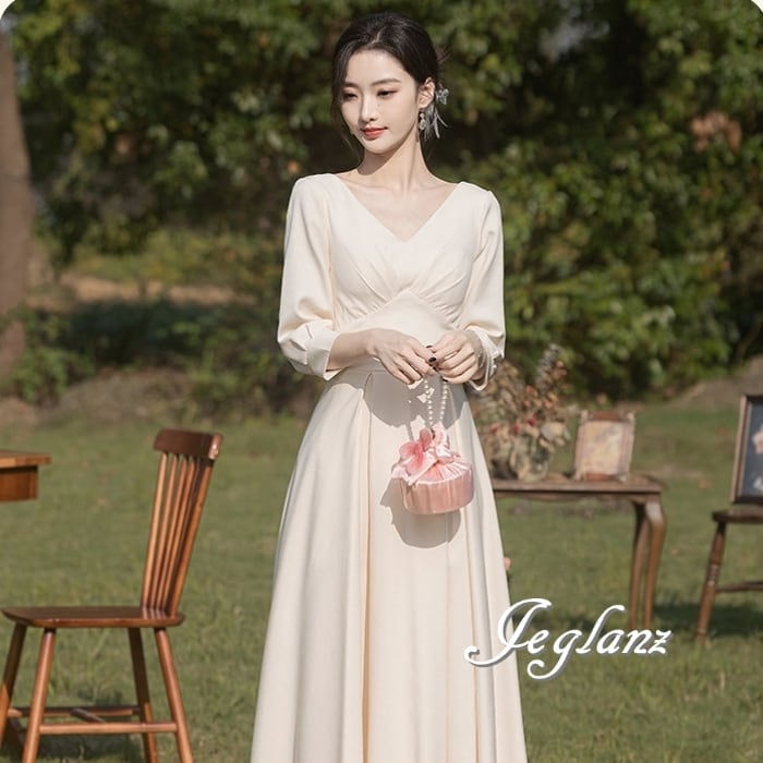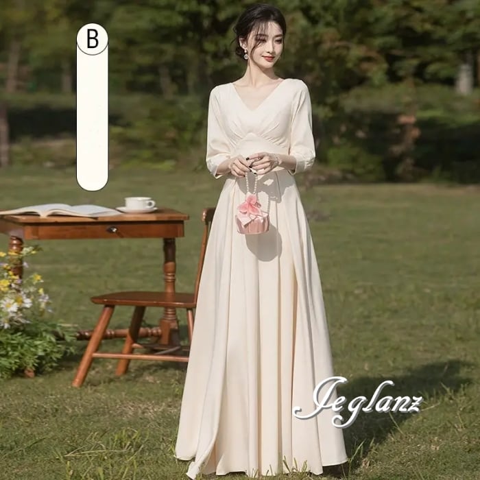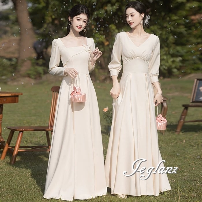 パーティ イブニングドレス カラードレス 7分袖 襟 4パターン (MB504)ζ☆