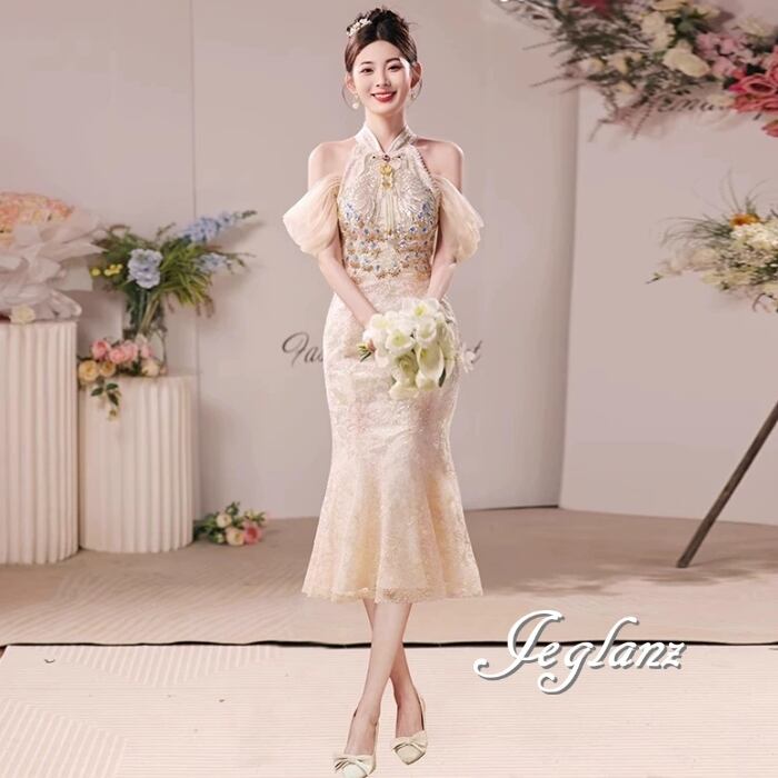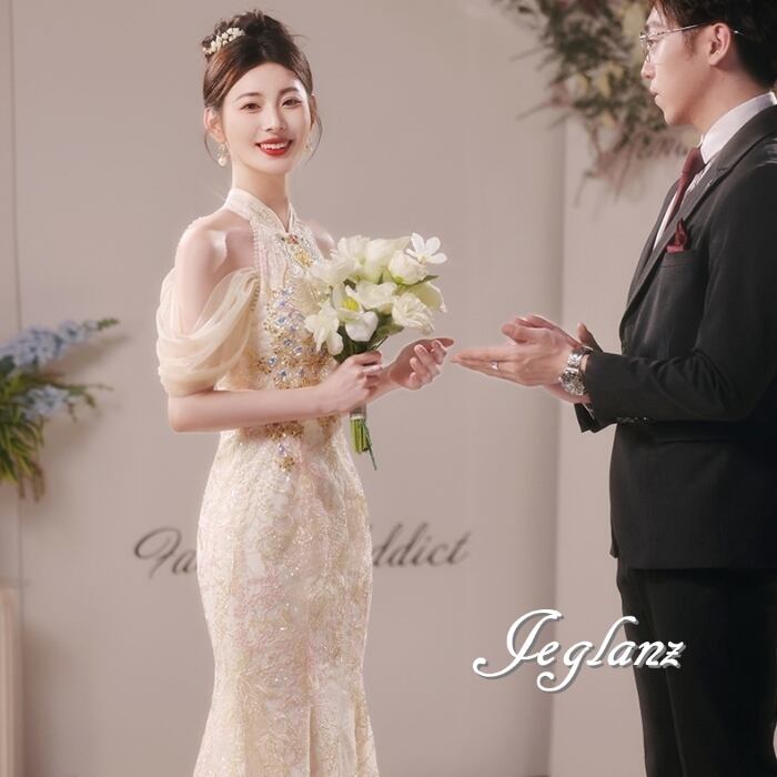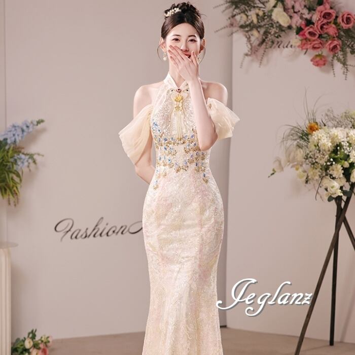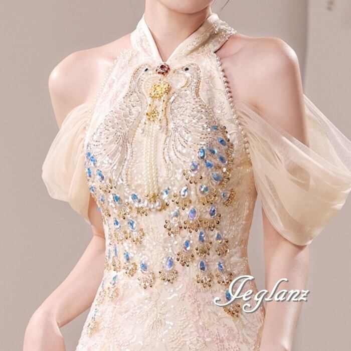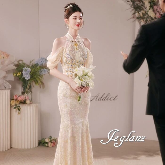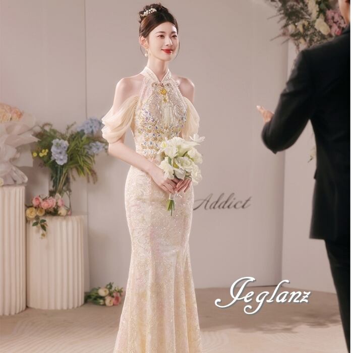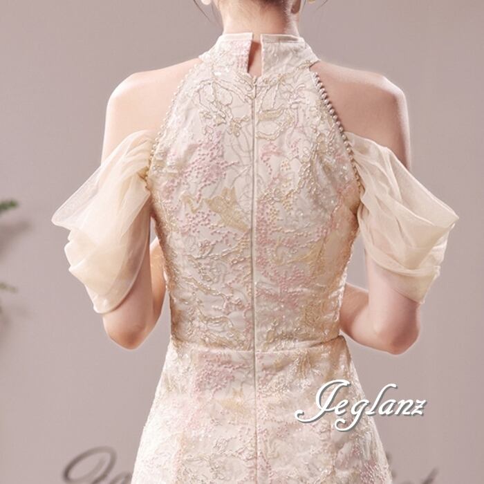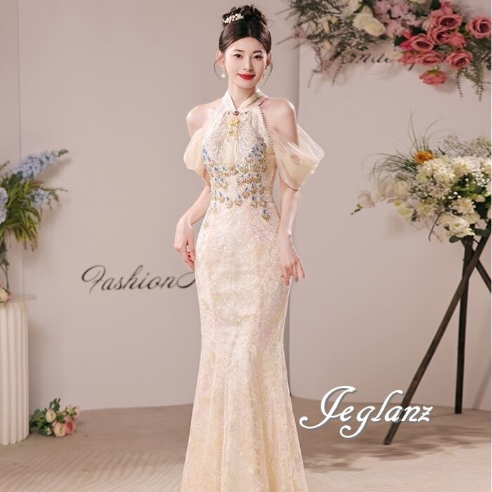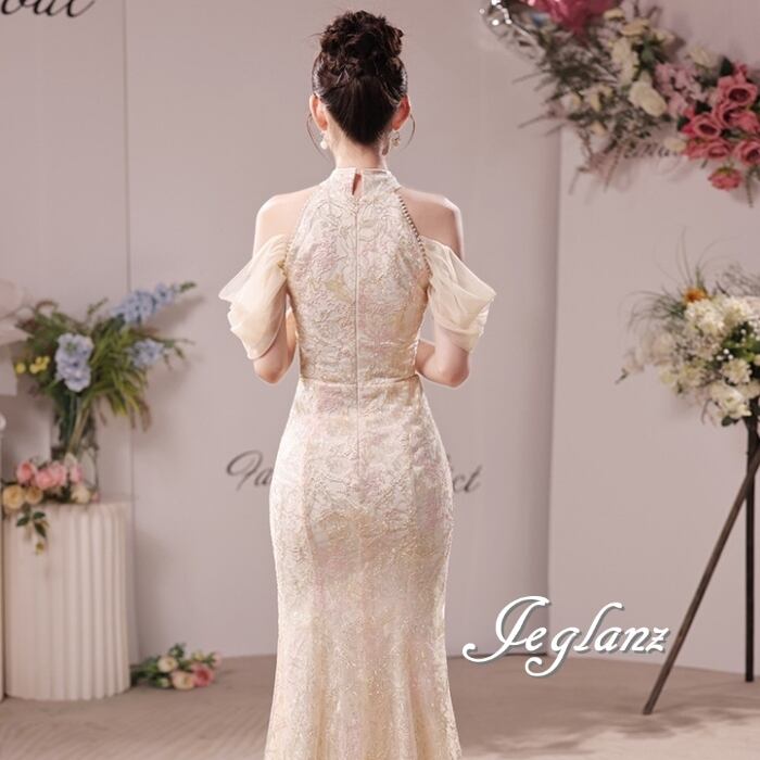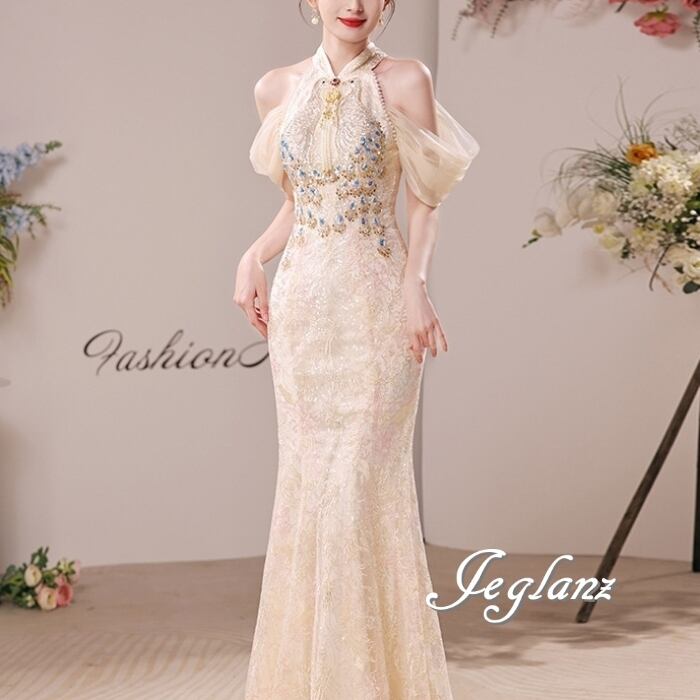 パーティ ドレス オフショル ビジュー パール ミドル/イブニング(MB550)ζ☆