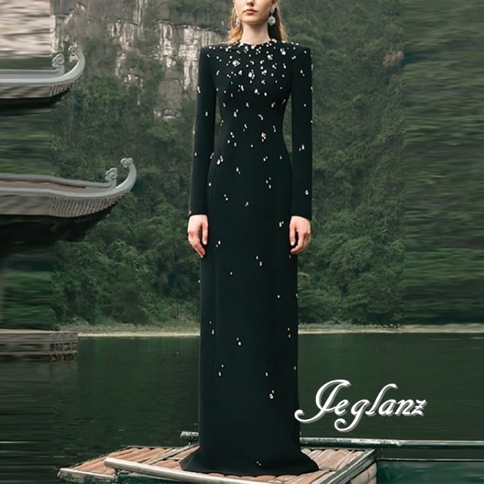 3色 パーティ イブニングドレス ビジュー ラインストーン 光沢感(MB561)ζ