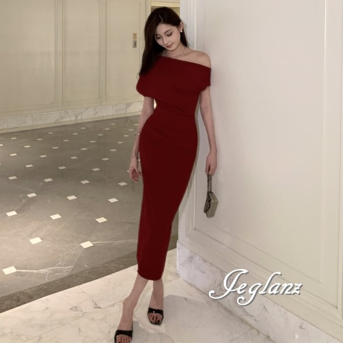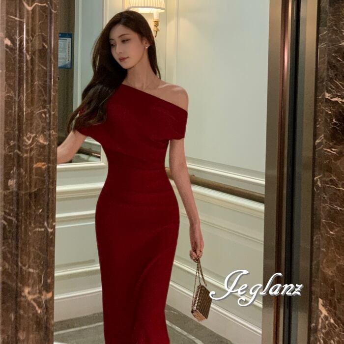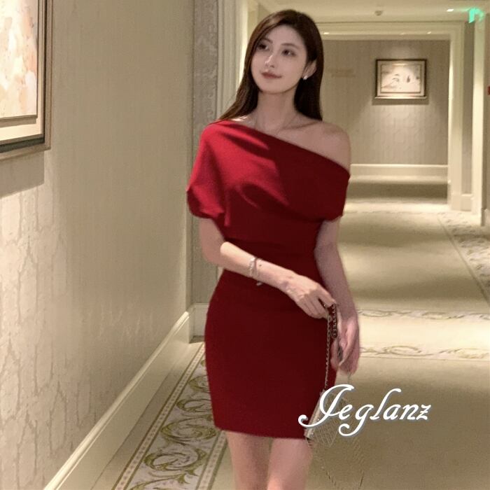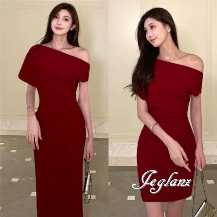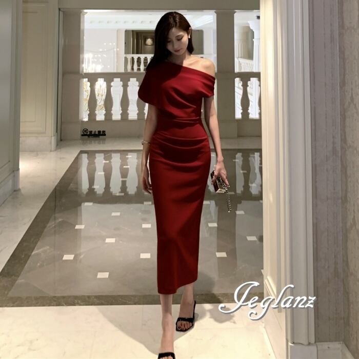 パーティ ドレス ワンピース 襟 2way タイト 肌見せ ミニ/ロング(MB584)ζ