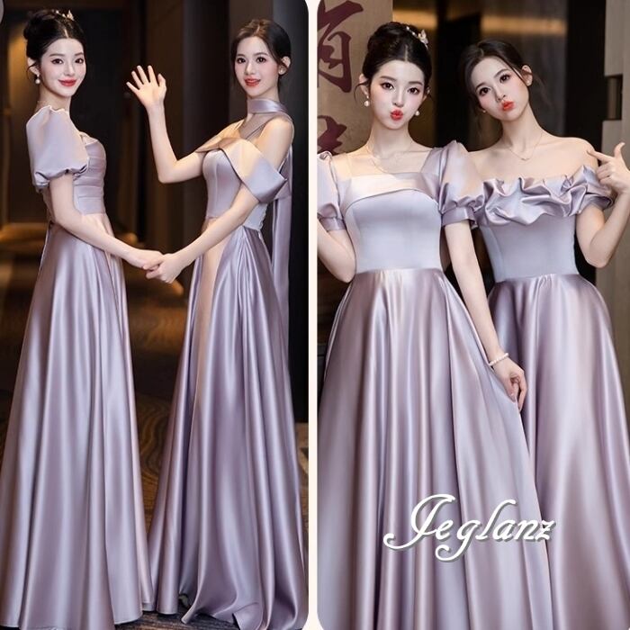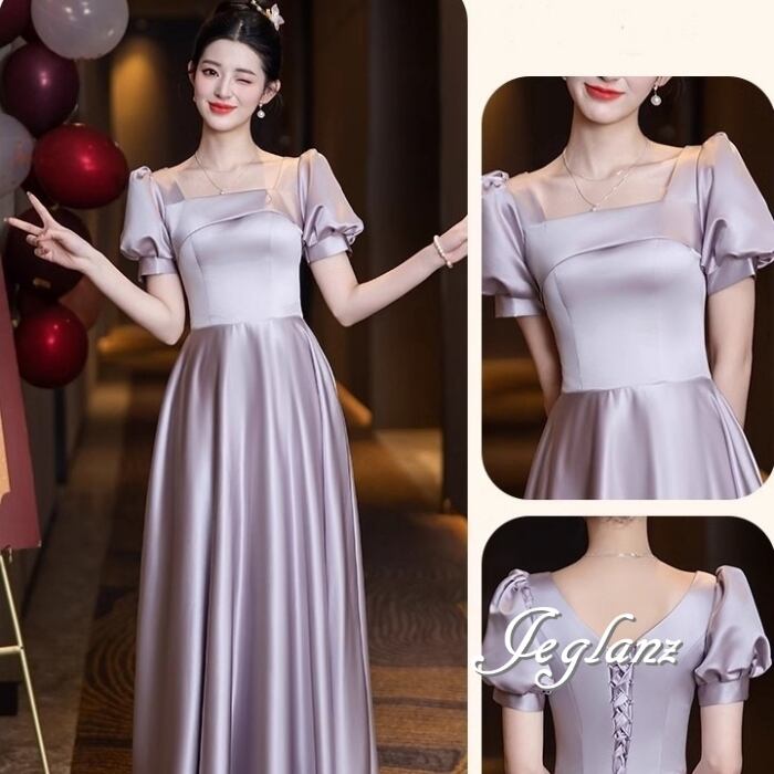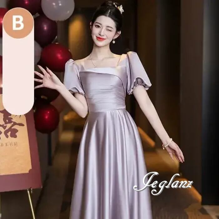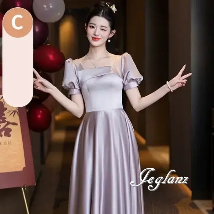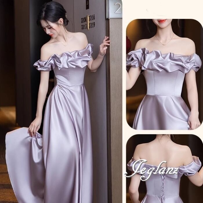 パーティ イブニングドレス ワンピース 編み上げ 光沢 4パターン(MB593)ζ☆