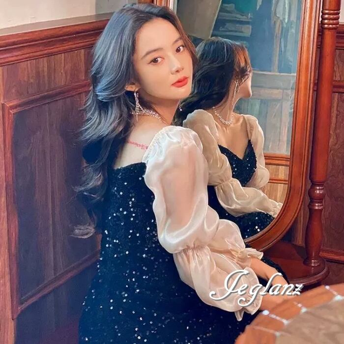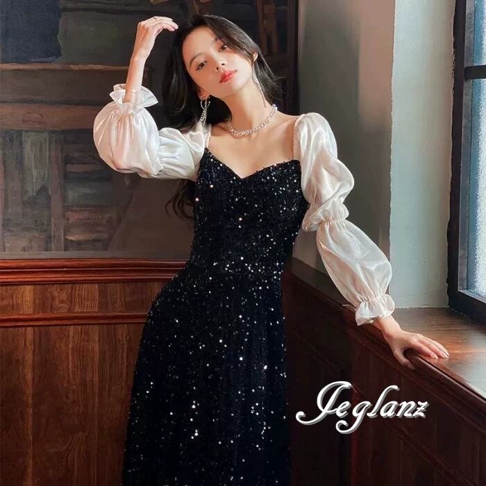 2色 パーティ イブニングドレス バイカラー キラキラ 光沢感(MB602)ζ☆