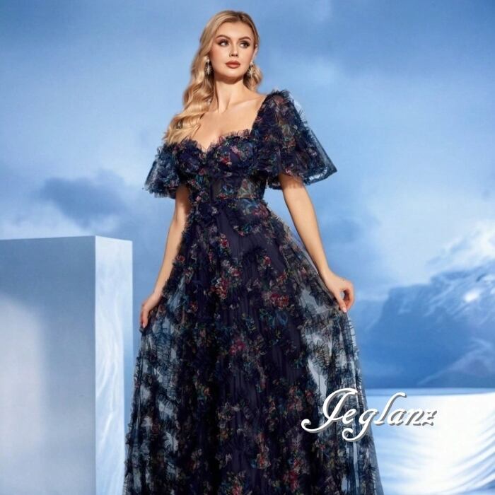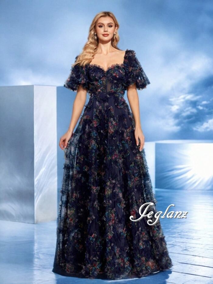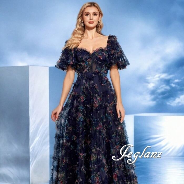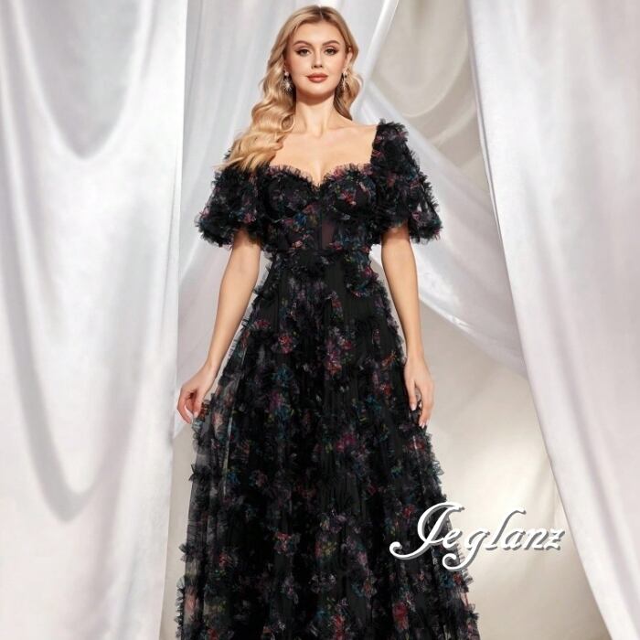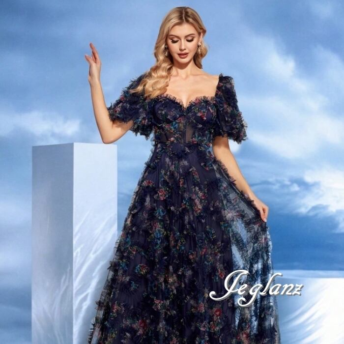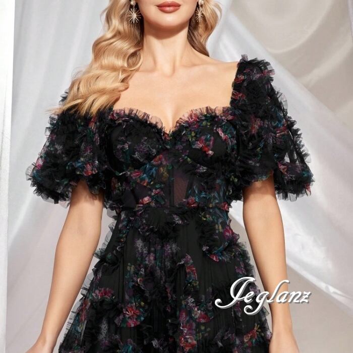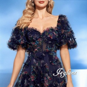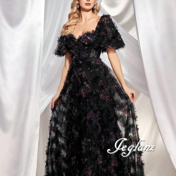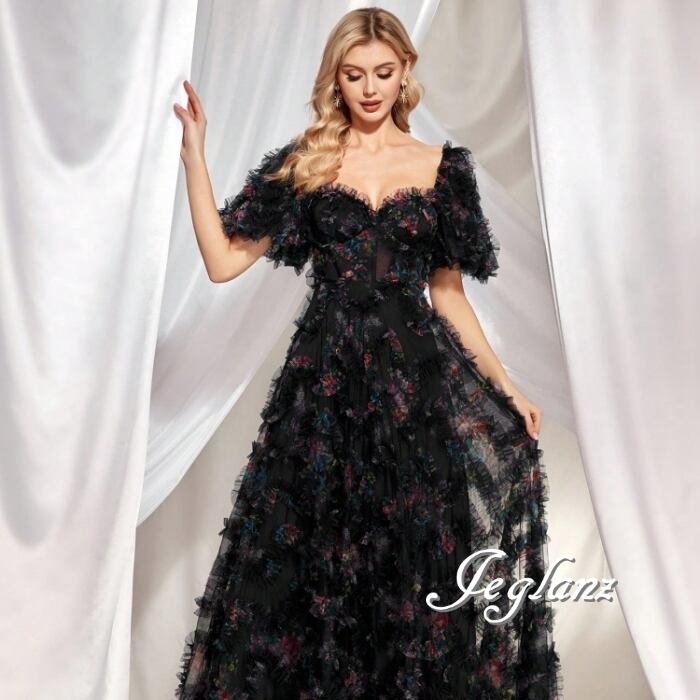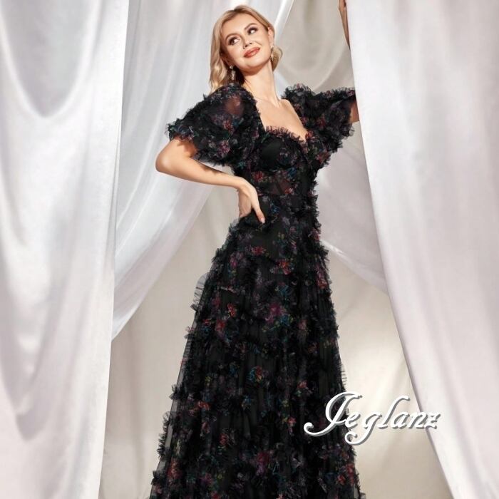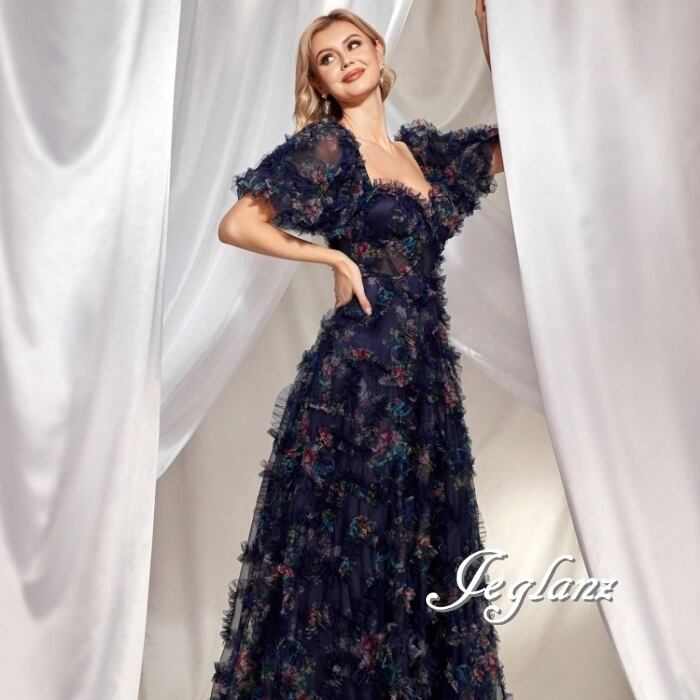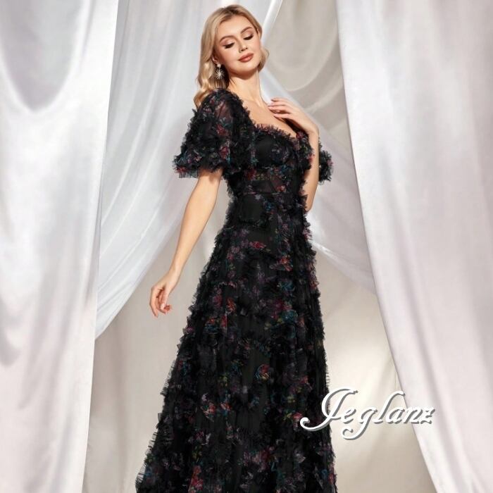 2色 パーティ 半袖 イブニングドレス 編み上げ フリル 背中開き(MB642)ζ☆