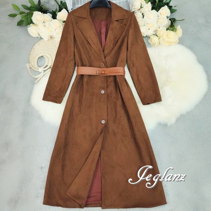 革ジャン レザー ロング コート スエード調 襟付き ボタン 韓国(MB652)τ