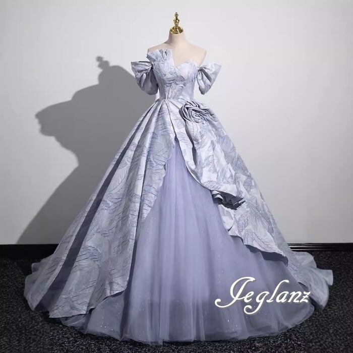 ウエディング カラードレス 立体フラワー オフショル 編み上げ(MB654)π☆
