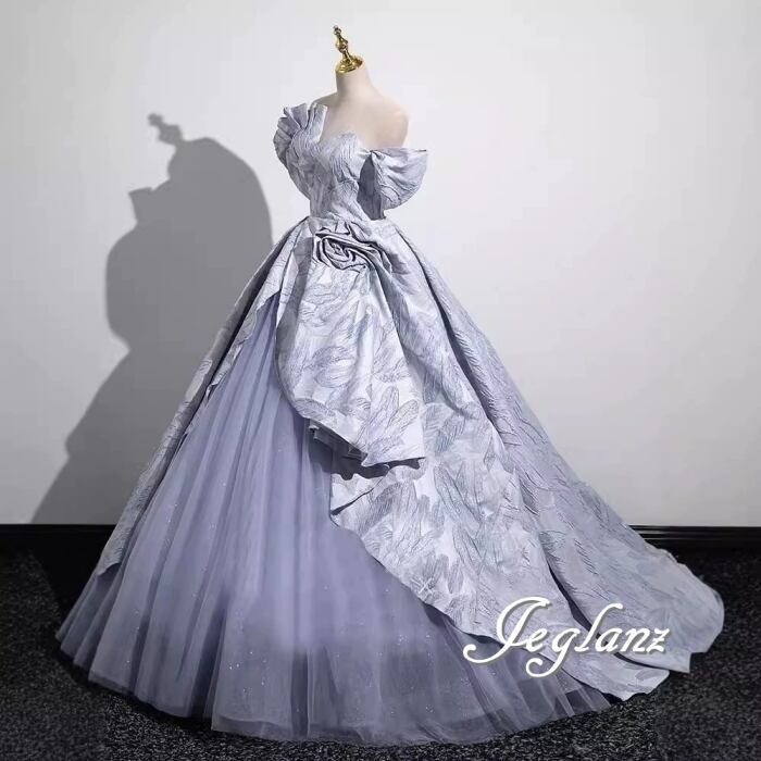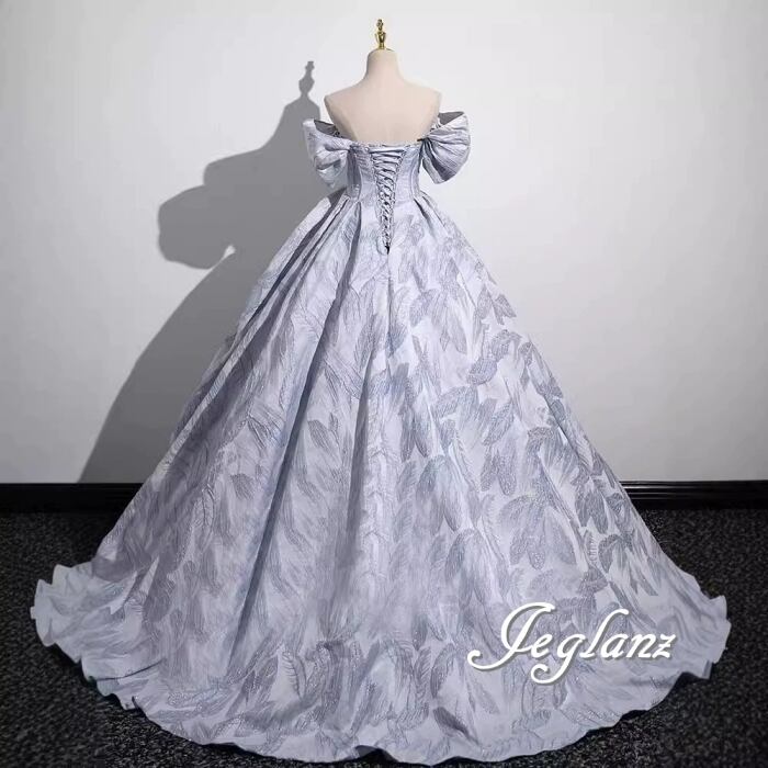 装飾した贅沢感のある装いで、後ろのレースアップがシャープな背中に導きます