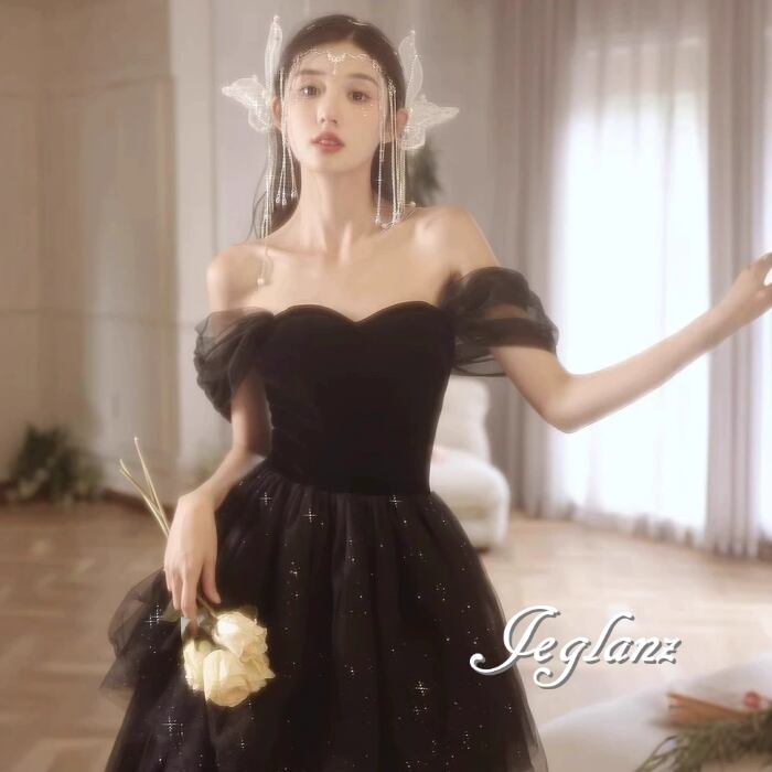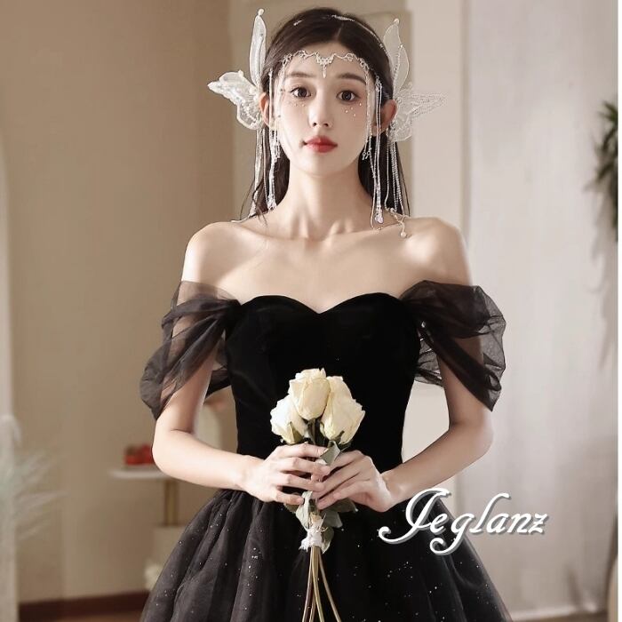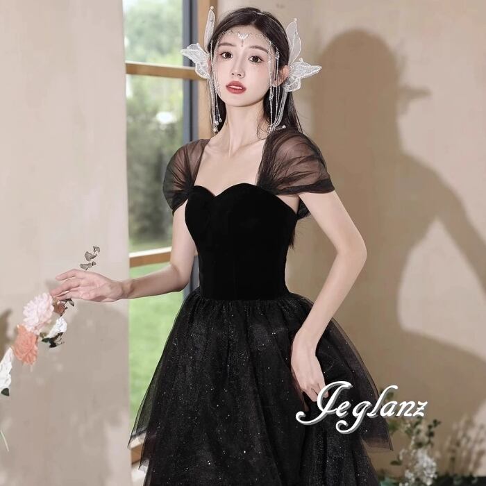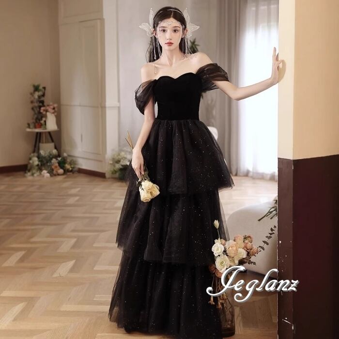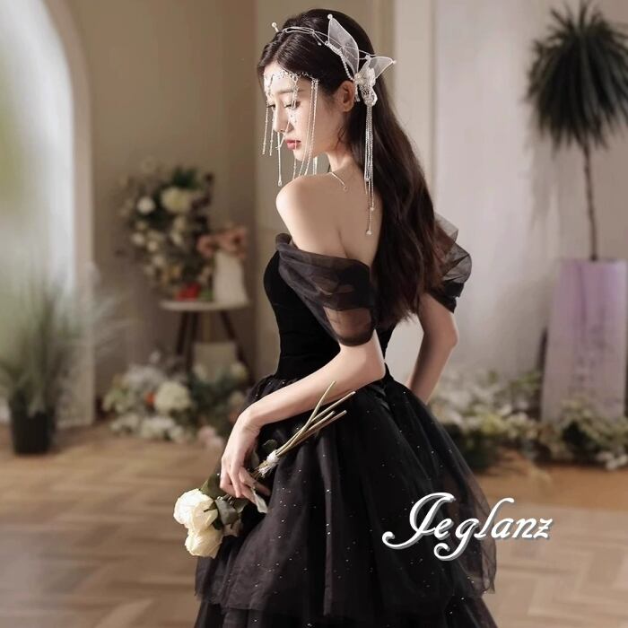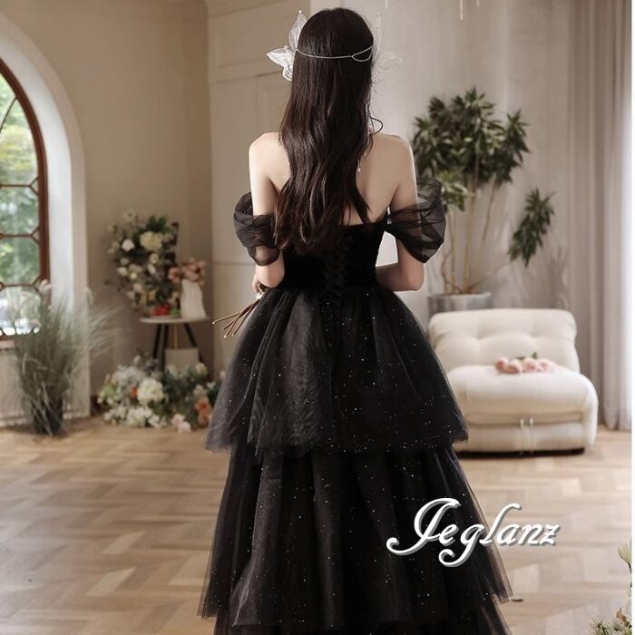 イブニングドレス ブラック ドレス レイヤード 編み上げ 光沢(MB681)ζ☆