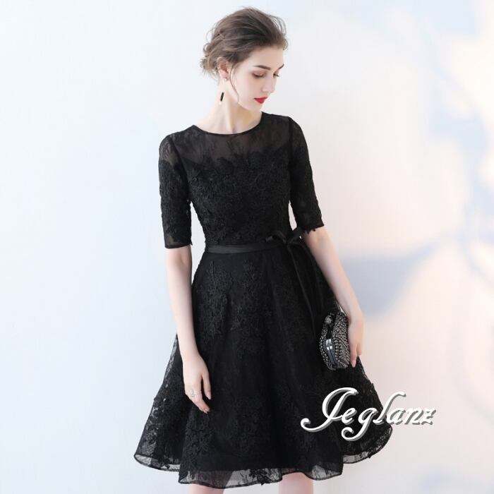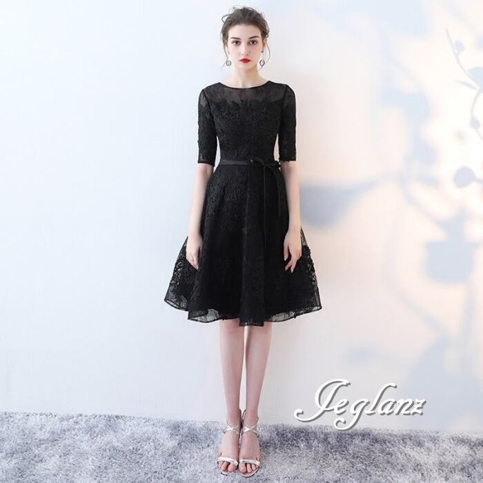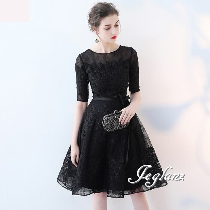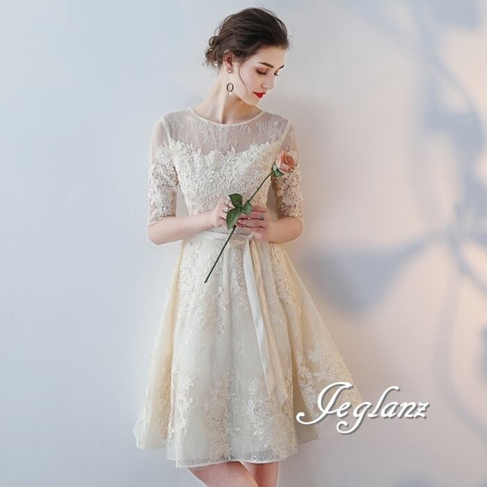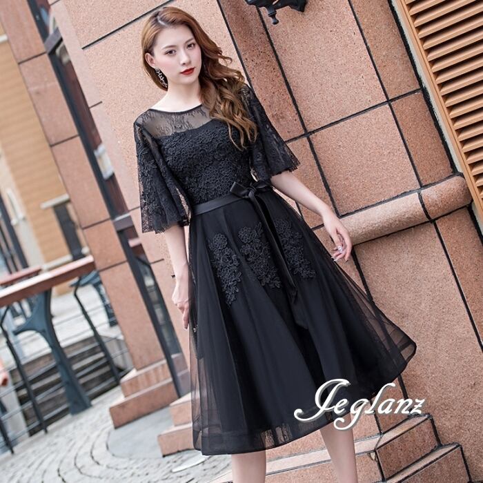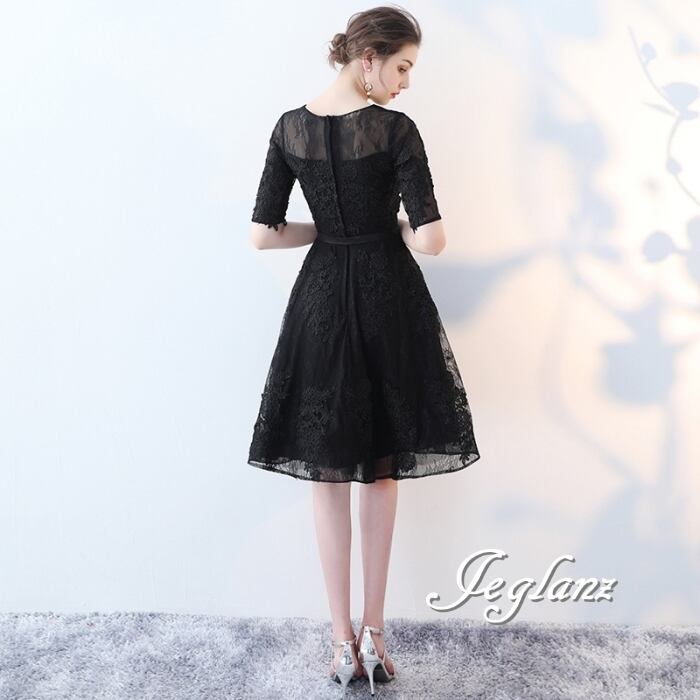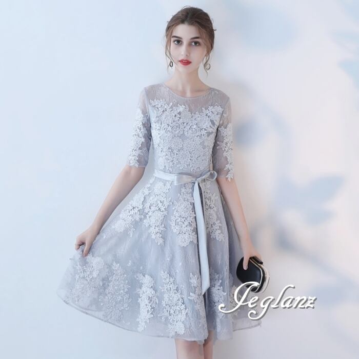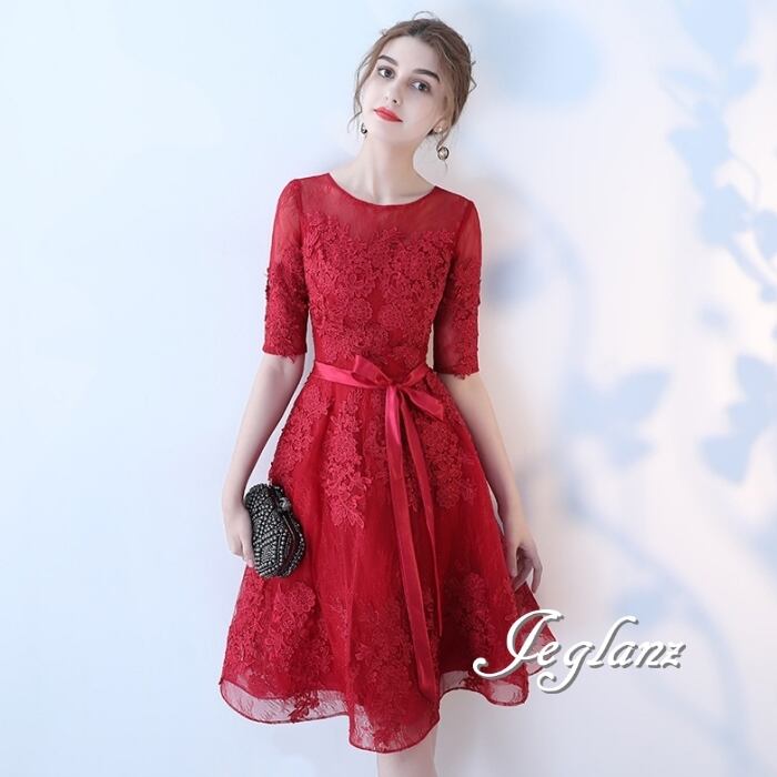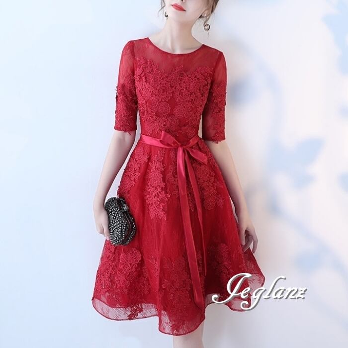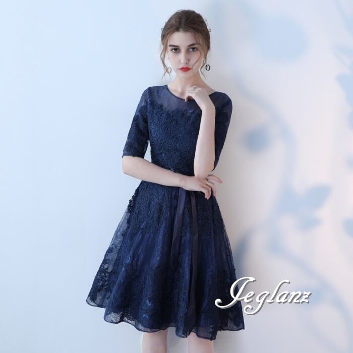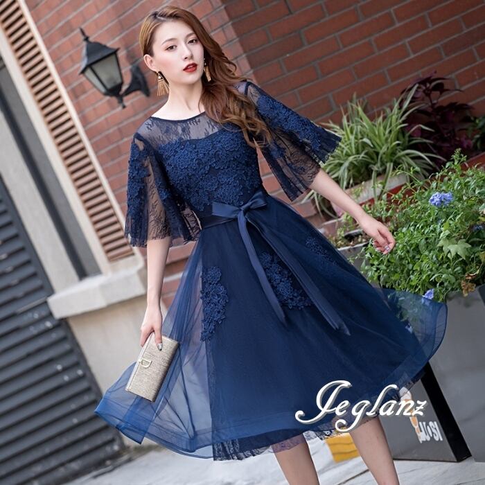 5色 パーティ ドレス 5分袖 ワンピース 刺繍 レース 2パターン (MB691)ζ☆