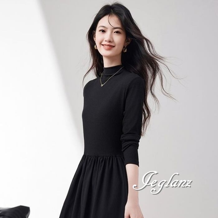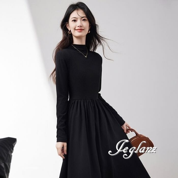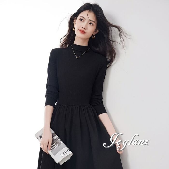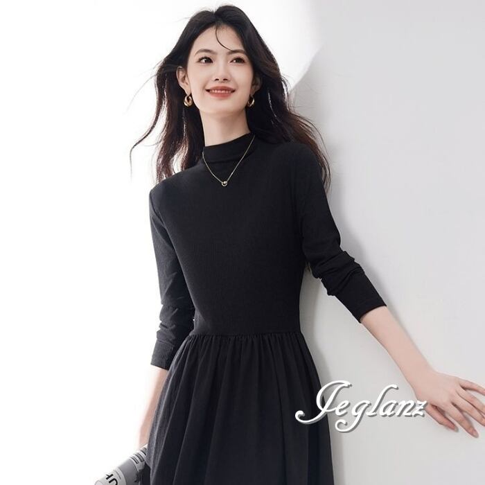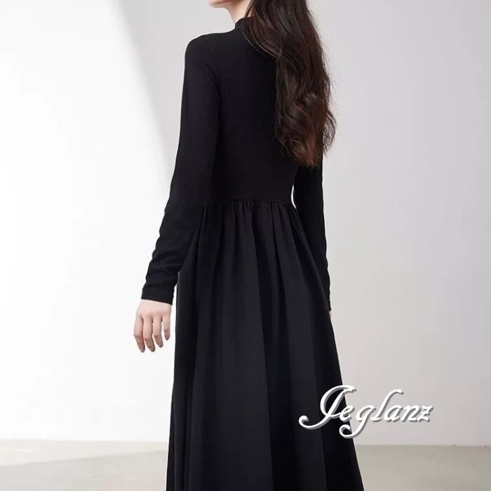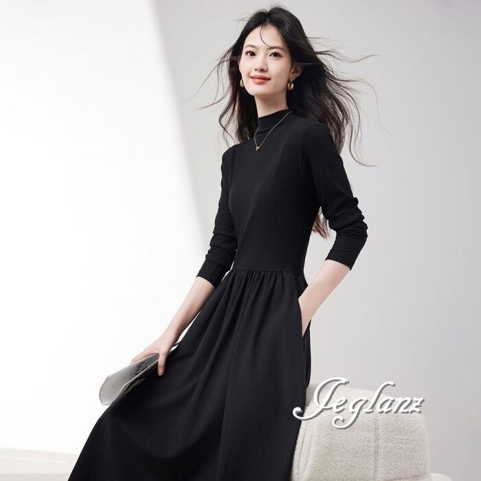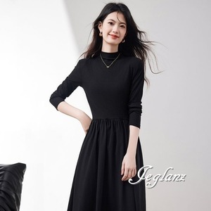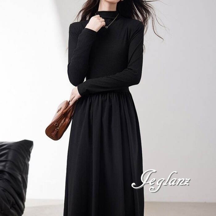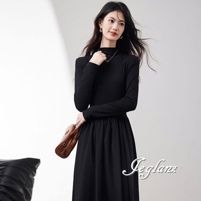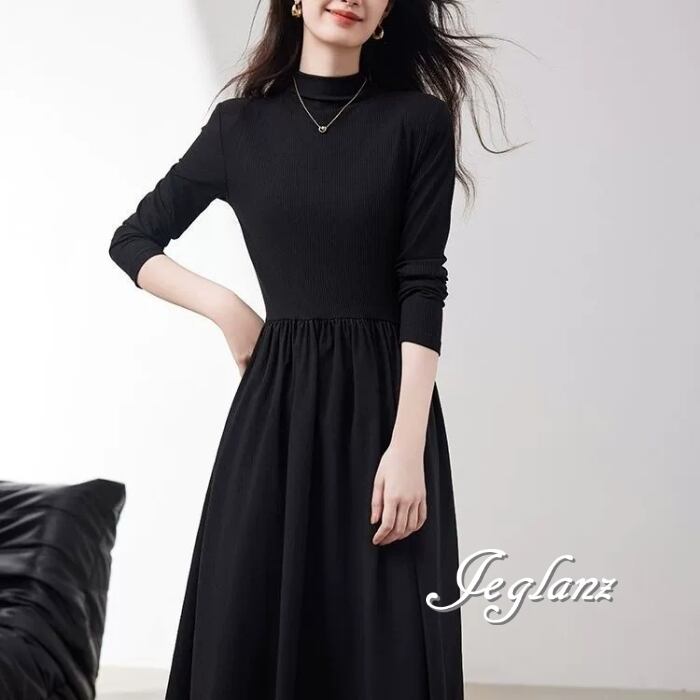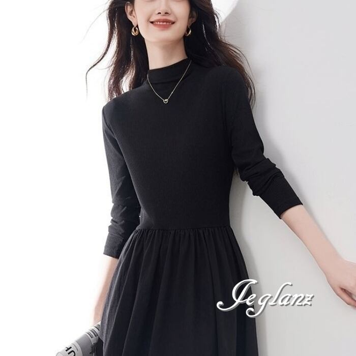 長袖 ワンピース ドレス ハイネック ポケット きれいめ シンプル(MB693)ζ☆