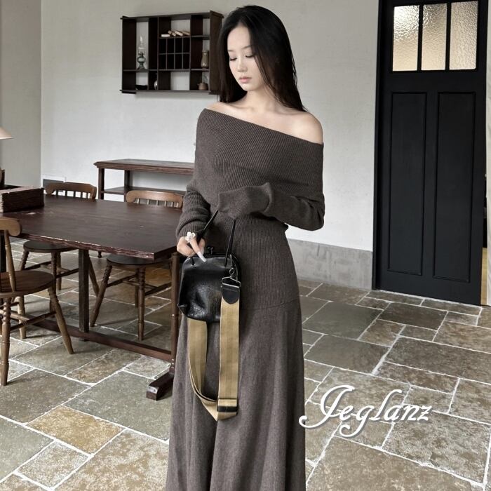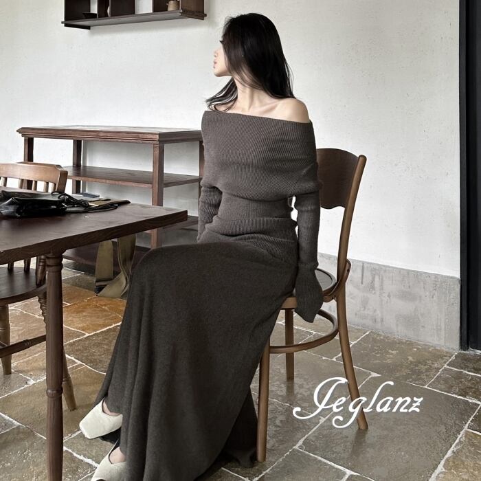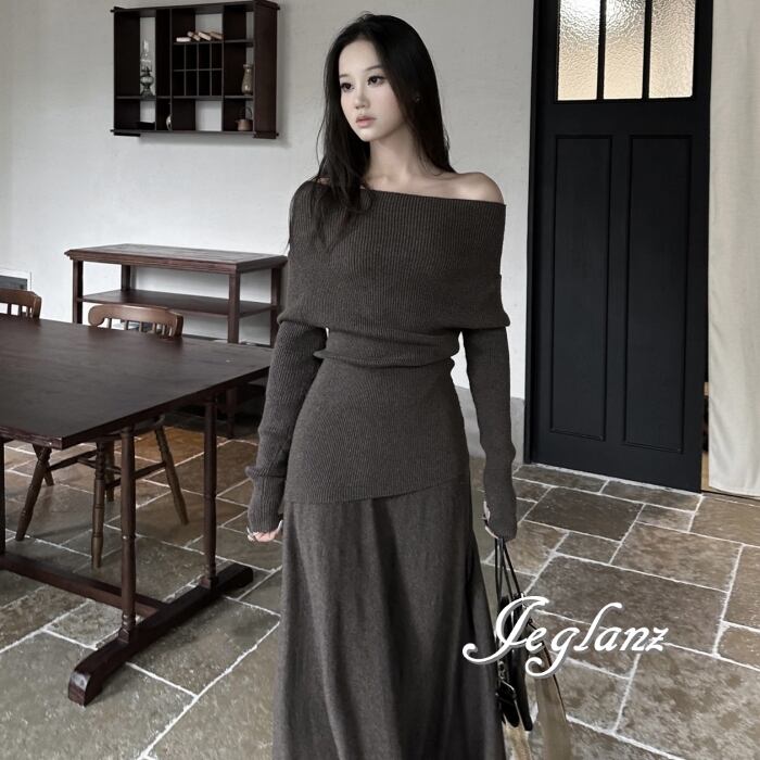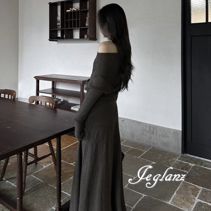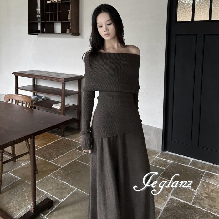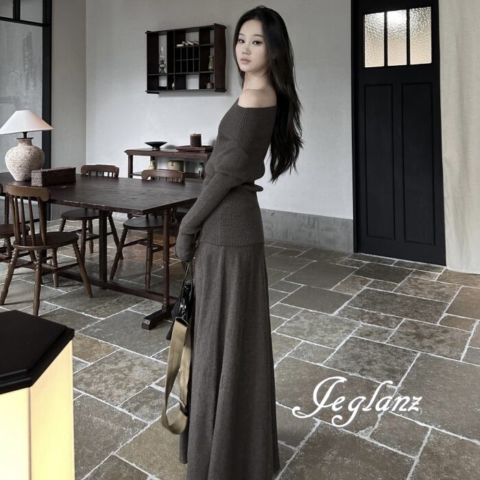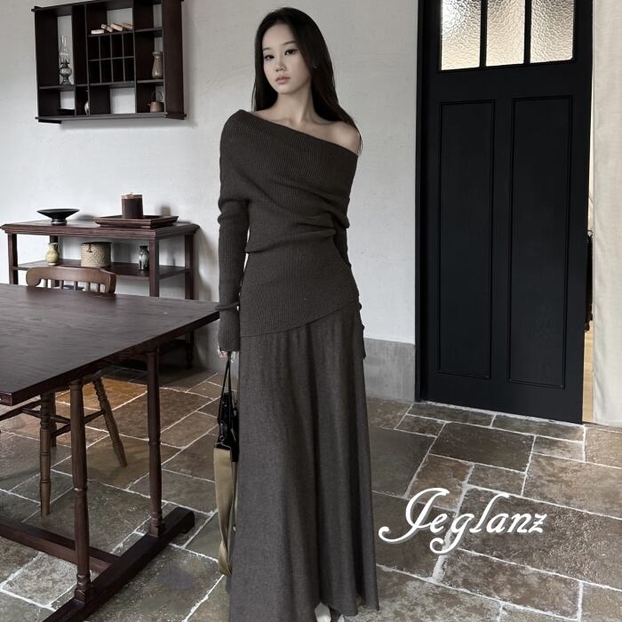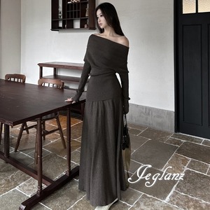 セットアップ 2点 ニット ケープカラー マキシ スカート エレ派(MB706)