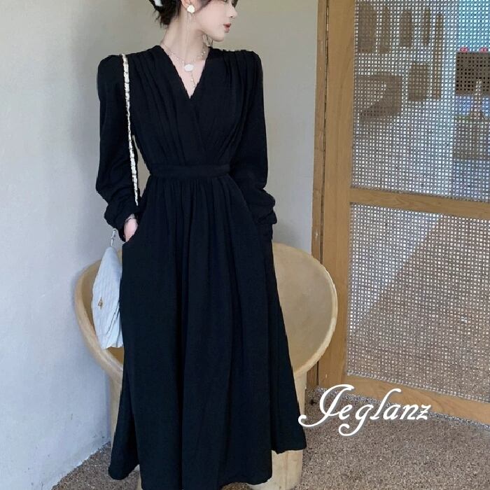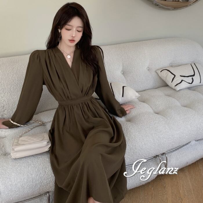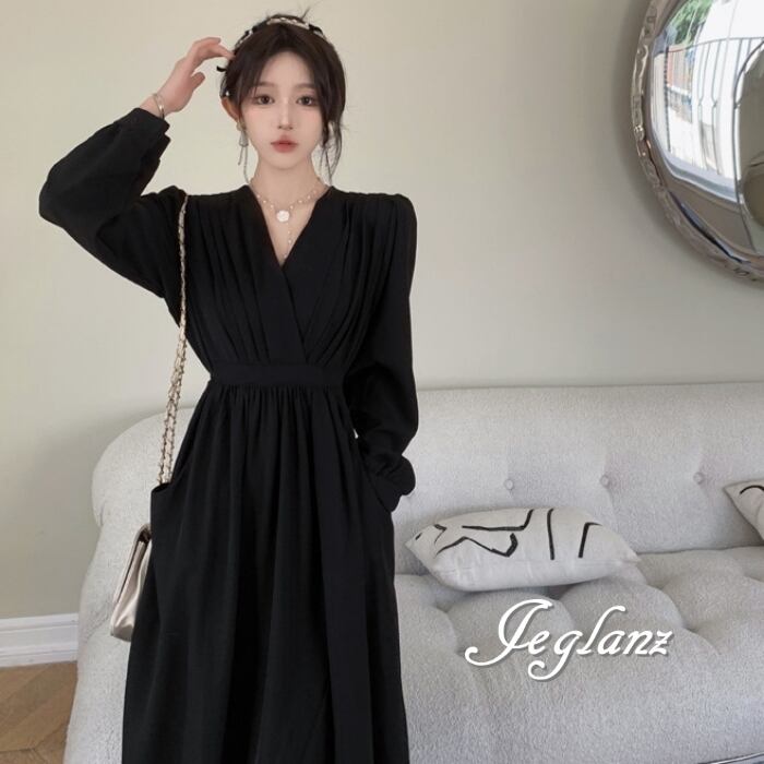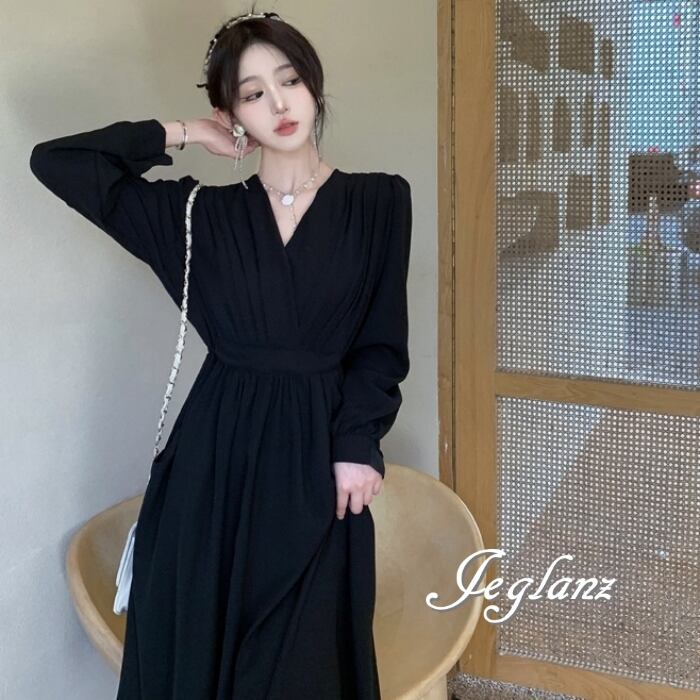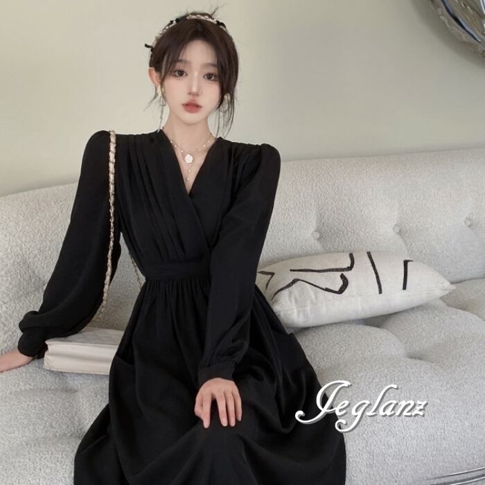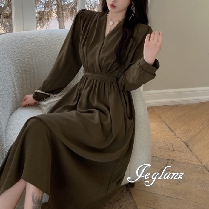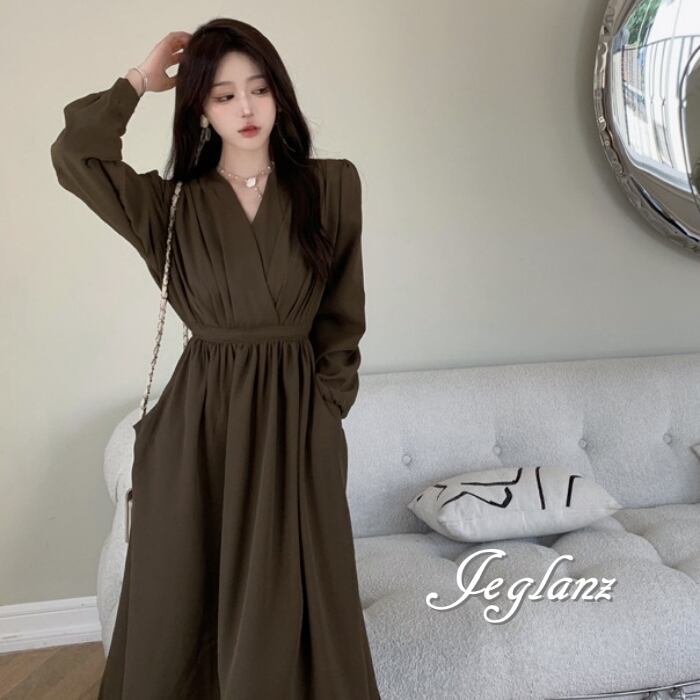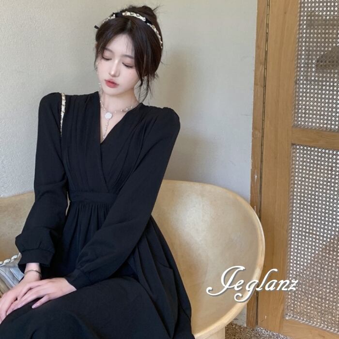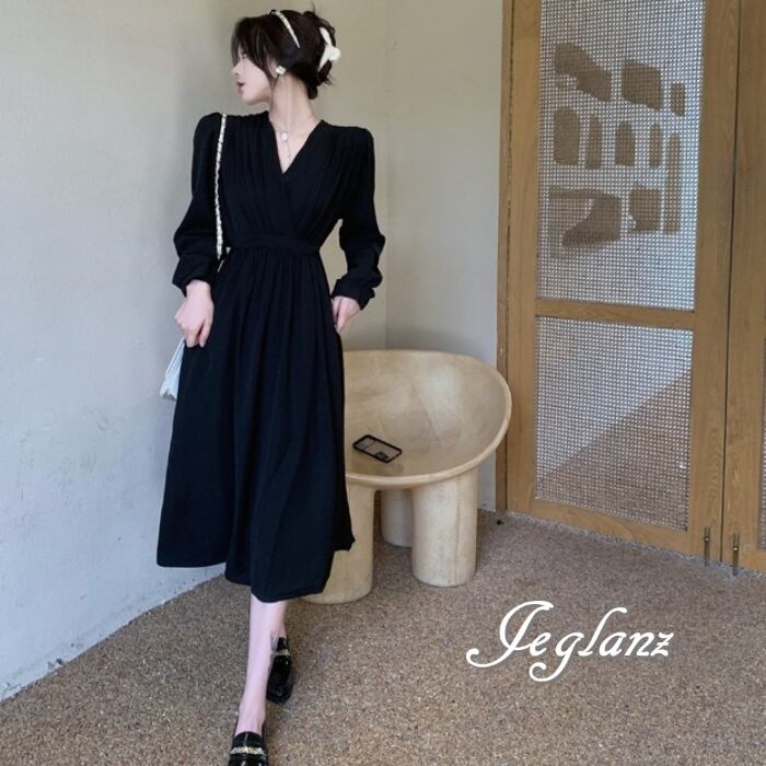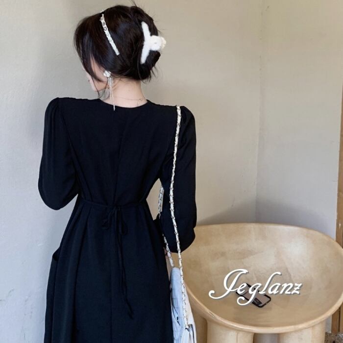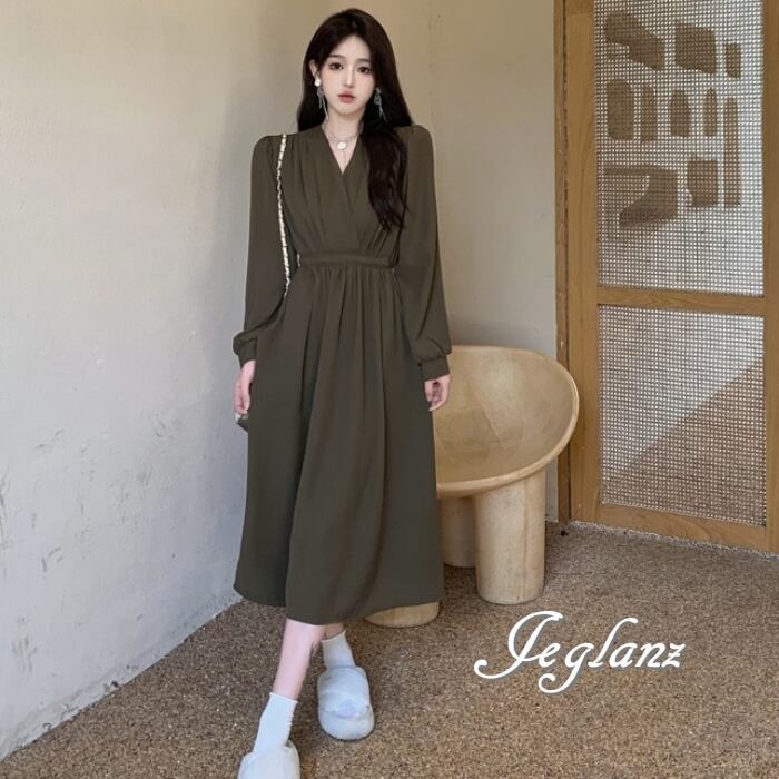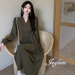 2色 ワンピース 長袖 ドレス Aライン きれいめ シンプル派 韓国(MB712)ζ☆