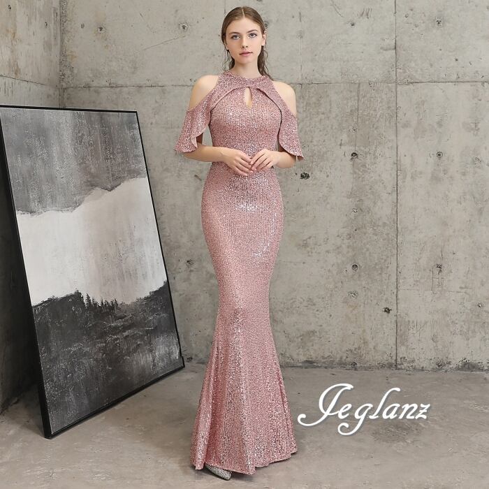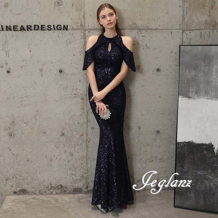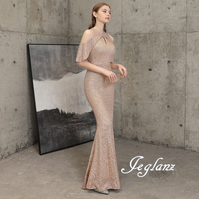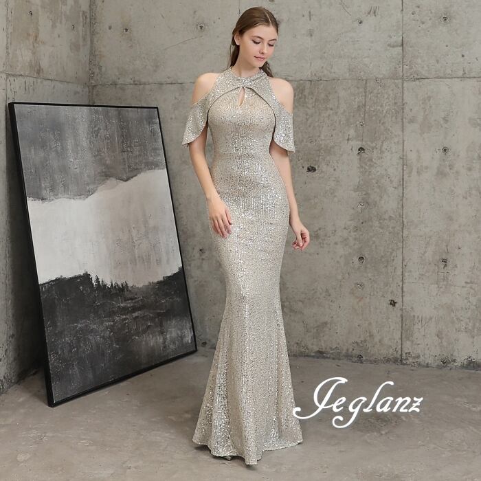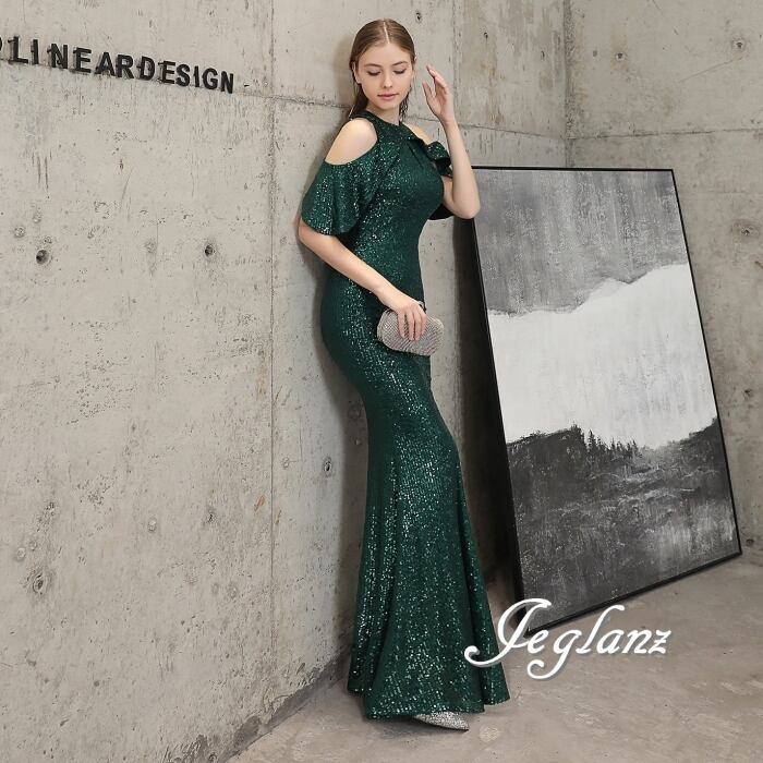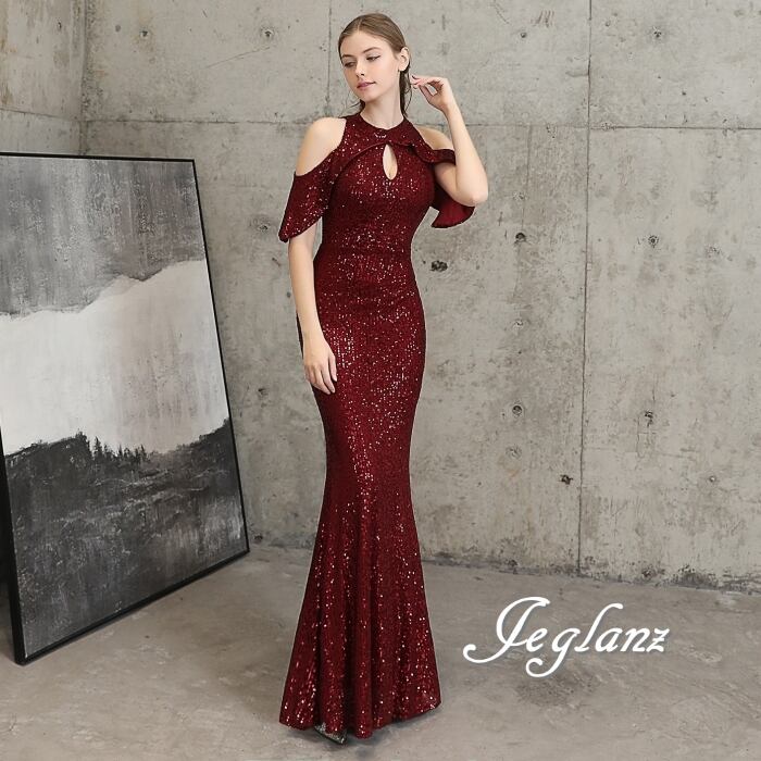 7色 華やか イブニングドレス オープンショルダー キラキラ 光沢感(MB724)ζ☆