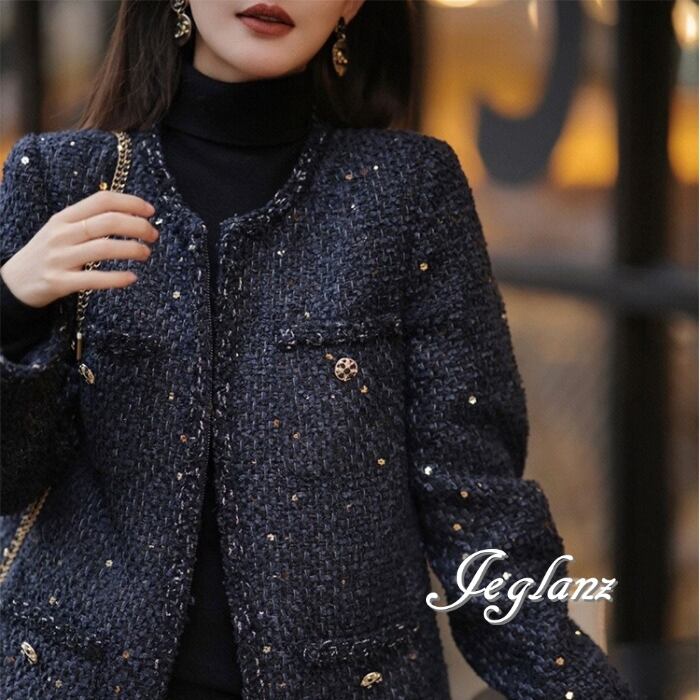 ツイード ニット ジャケット シャイニー クラス感 大きいサイズ(MB725)τ