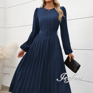 2色 プリーツ ワンピース フォーマル ドレス Vネック 共ベルト 細見え(MB743)ζ