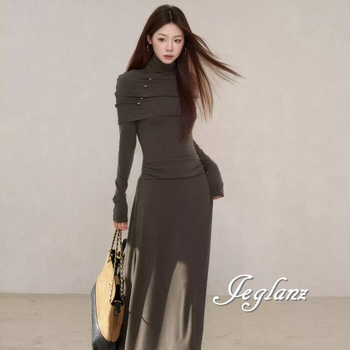 ニット マキシ丈 ワンピース 長袖 ケープ ショール付き 2way ♪ (MB763)γ