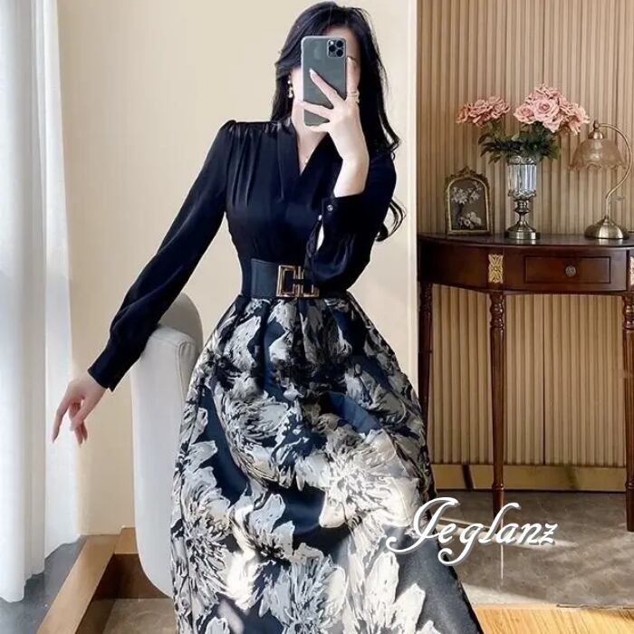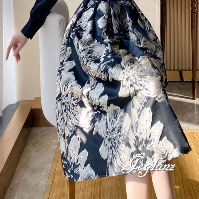 フェイク ワンピース 長袖 ドレス 花柄 Aライン スカート エレ派(MB785)ζ☆
