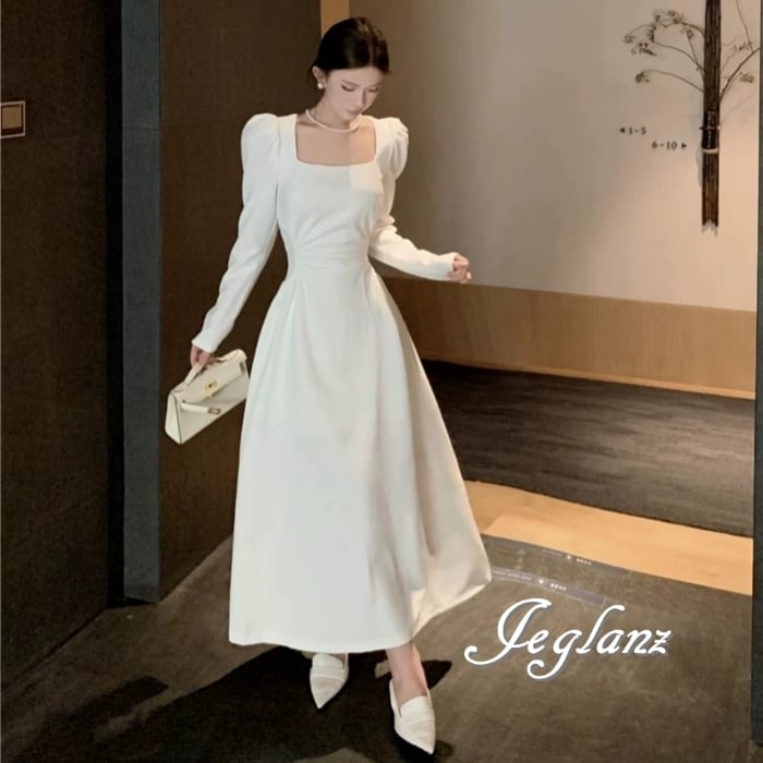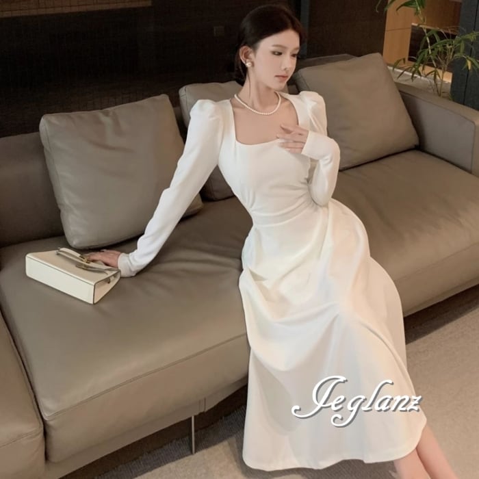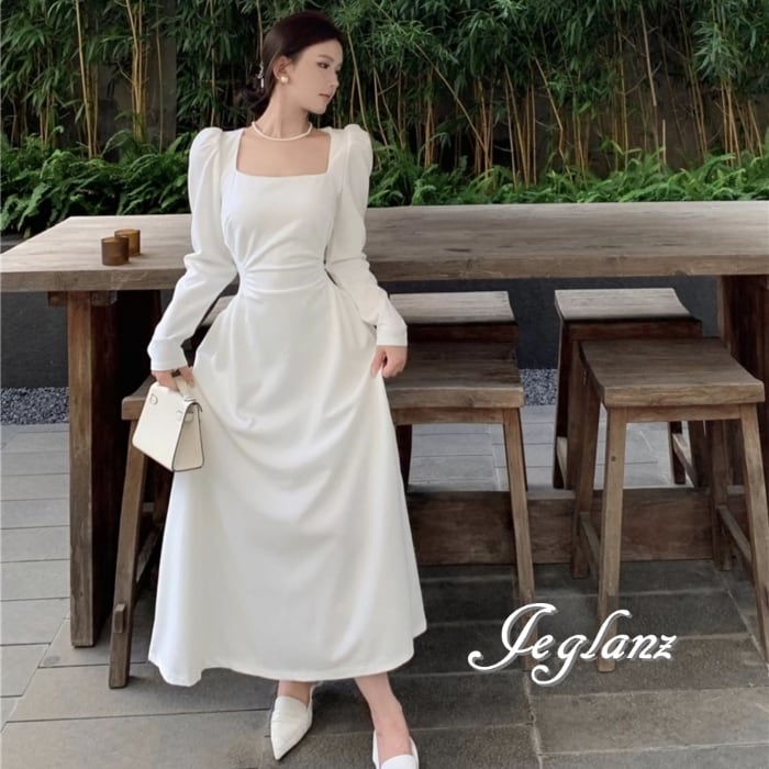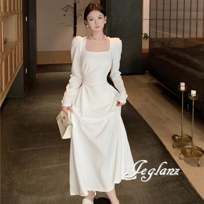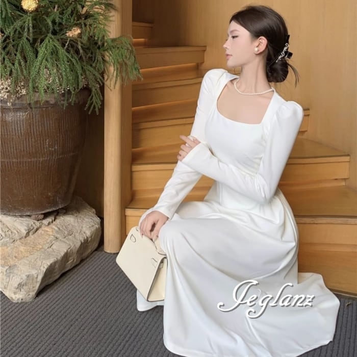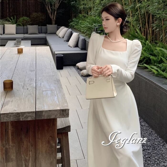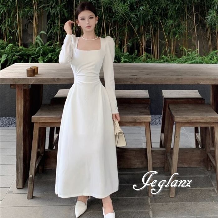 パーティ ドレス 長袖 ワンピース スクエア きれいめ シンプル派(MB831)ζ