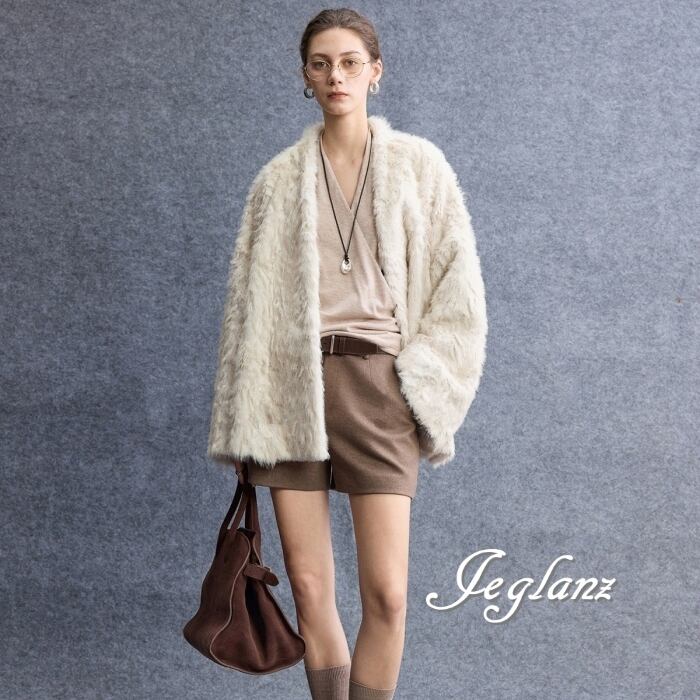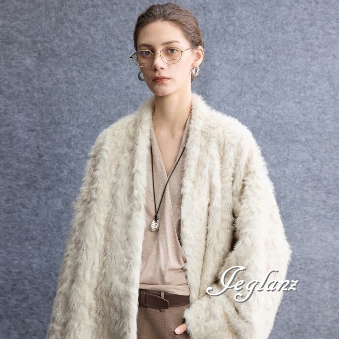 2色 ファー エコファ ジャケット ブルゾン ノーカラー ふわモコ( MB853)φ
