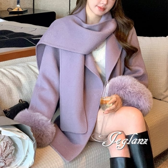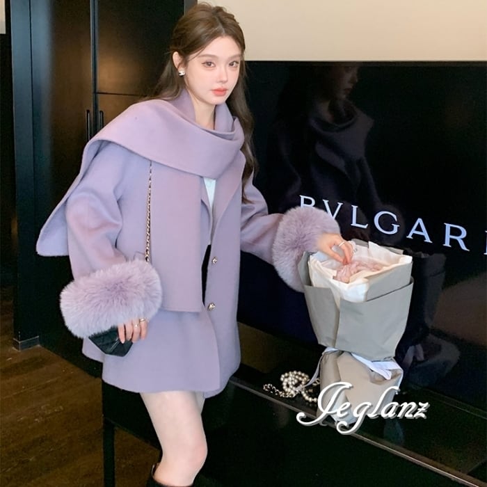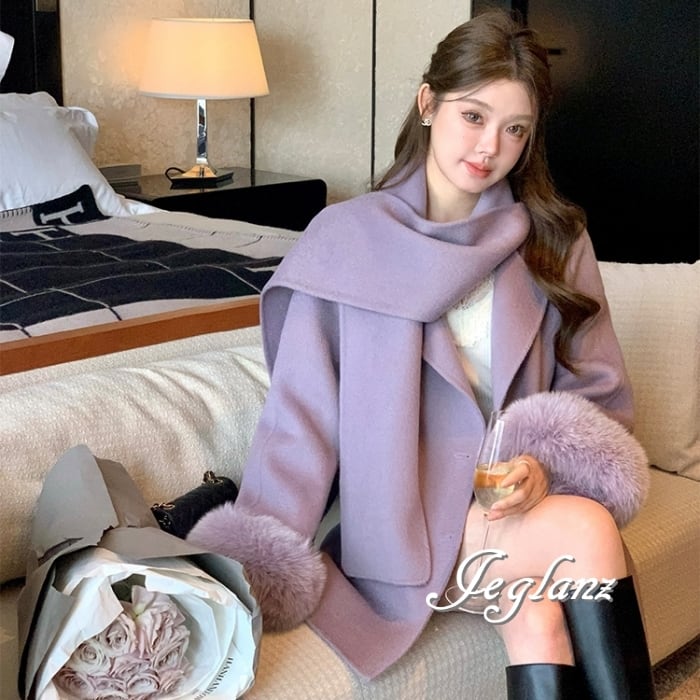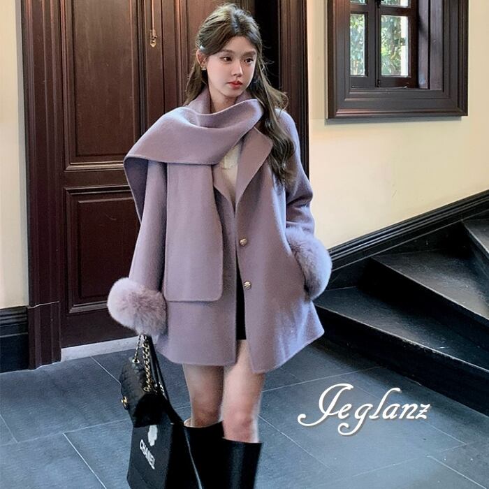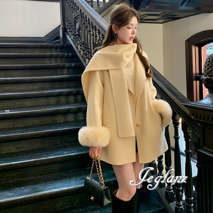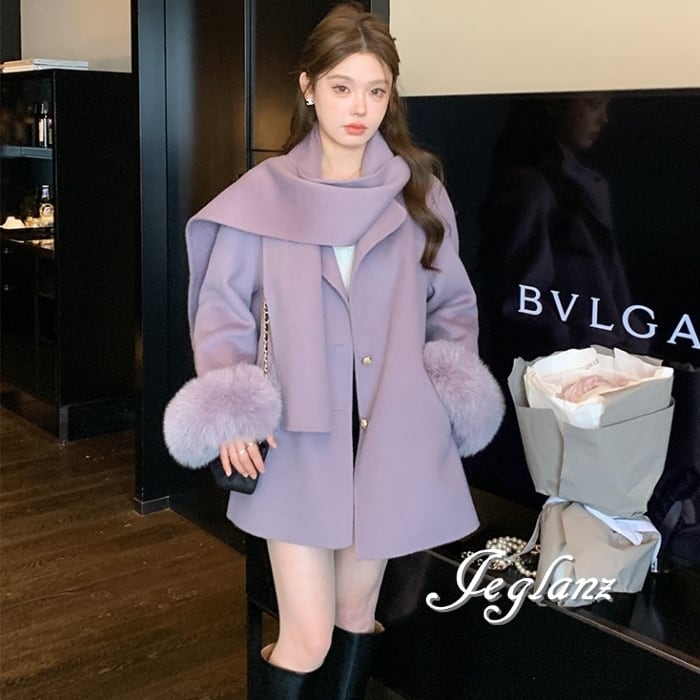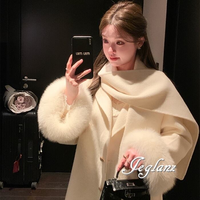 4色 ショール付き ニット コート ボリュームファー ファンシー (MB855)λι