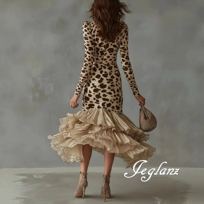 パーティ ドレス 長袖 ワンピ レオパード柄 フィッシュテール ♪(MB862)ζ☆