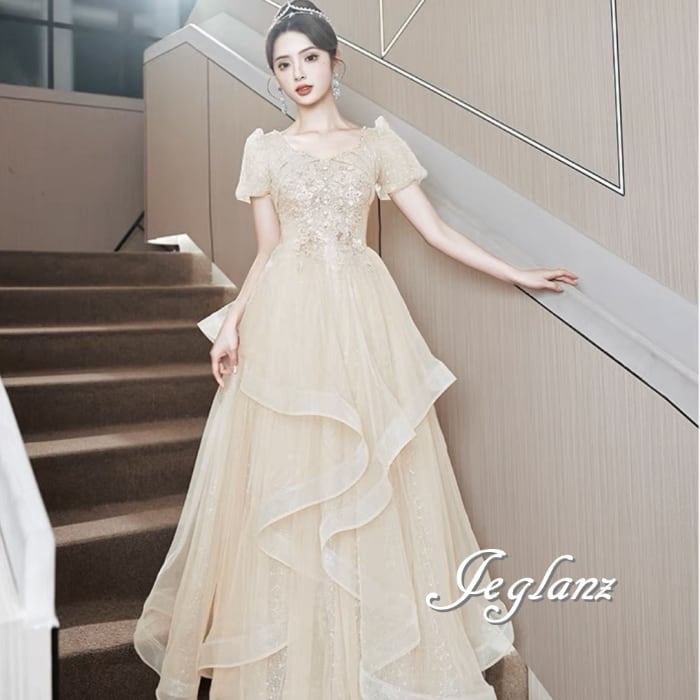 3色 パーティ イブニングドレス レイヤード フリル パール 光沢感 ♪(MB882)ζ☆