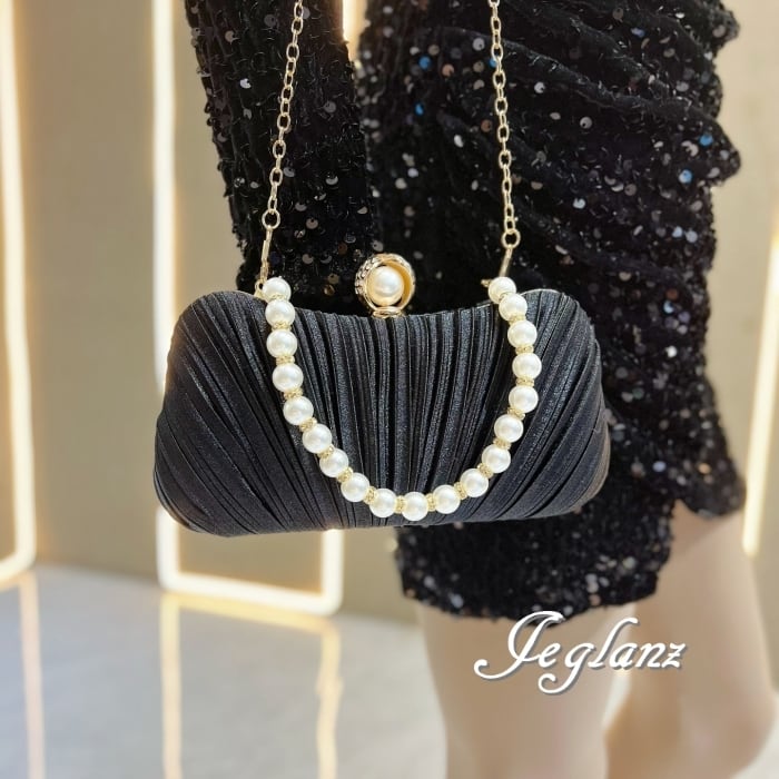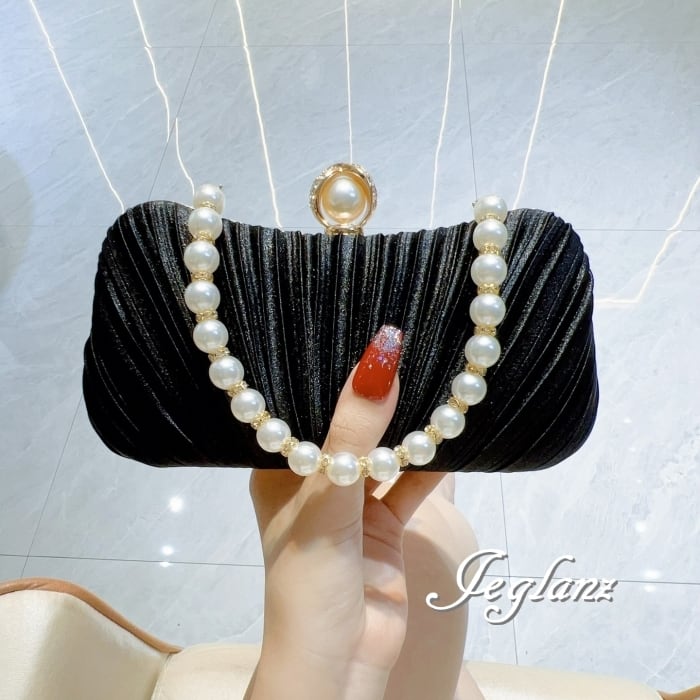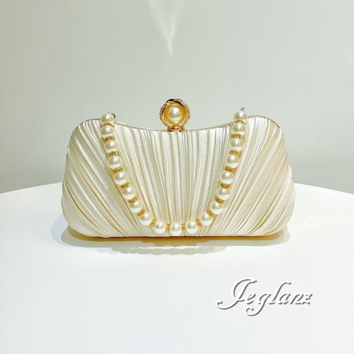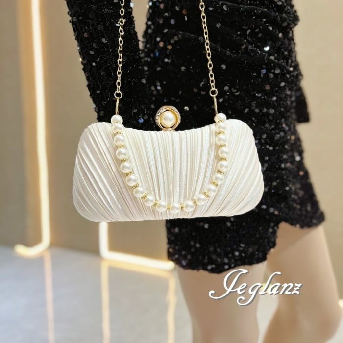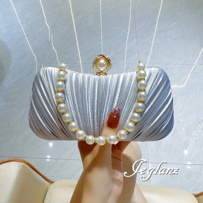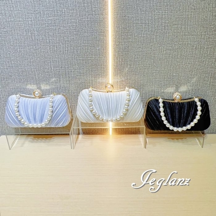 結婚式 バック クラッチ パール 持ち手 プリーツ 2way 光沢 3色(MB965)ν