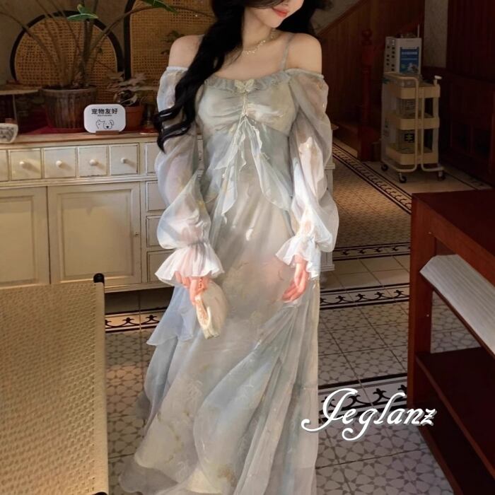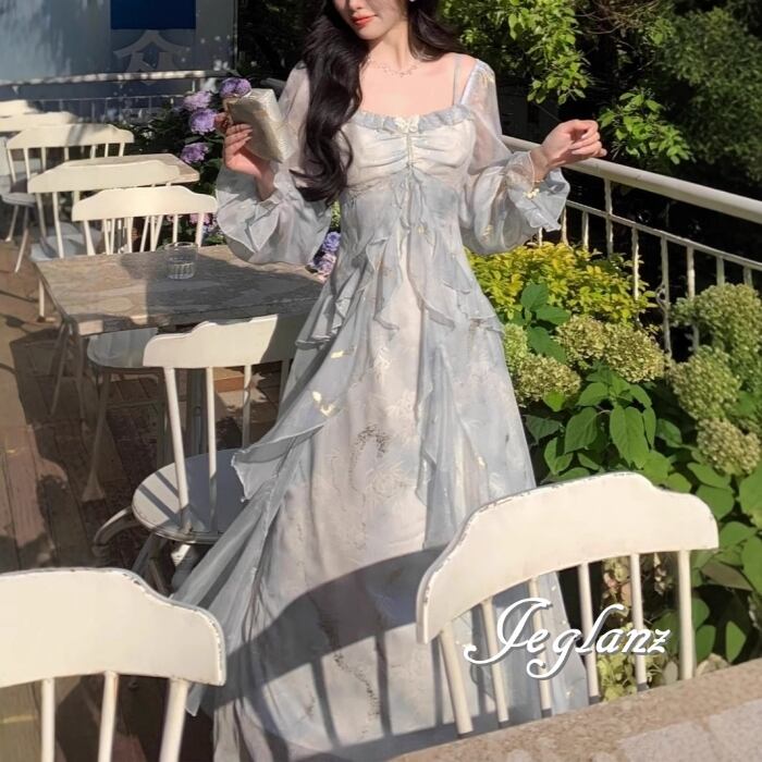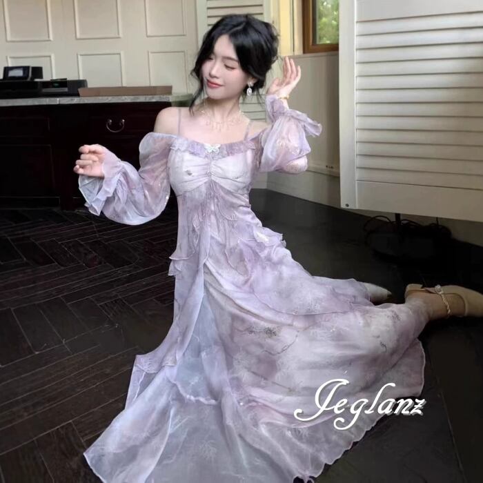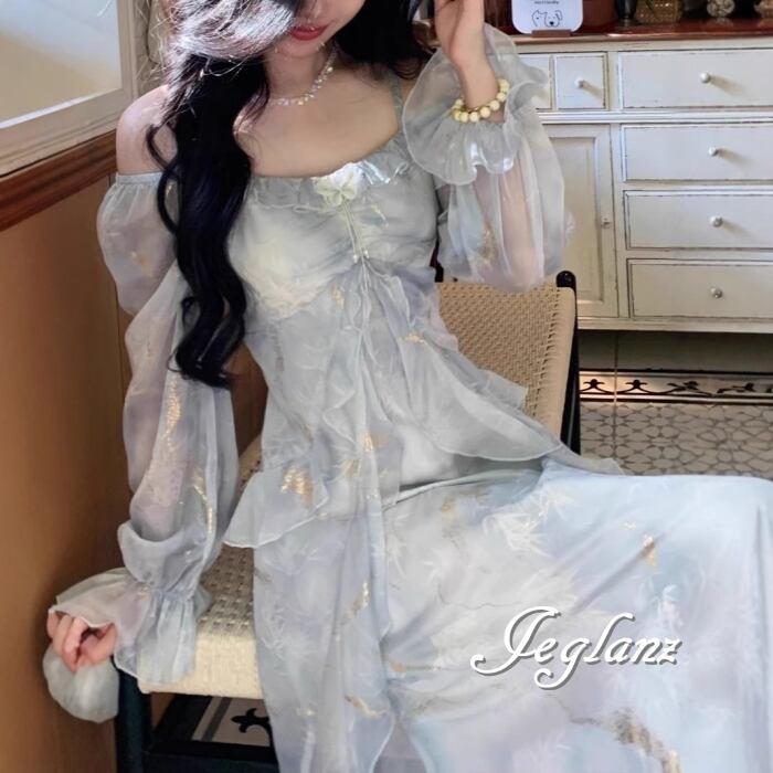 華やか ラッフル フリル ワンピース 長袖 ドレス 蝶 2way 3色 ♪ (MB982)ζ☆