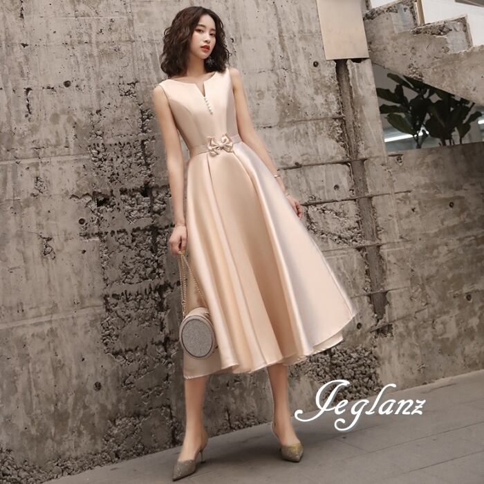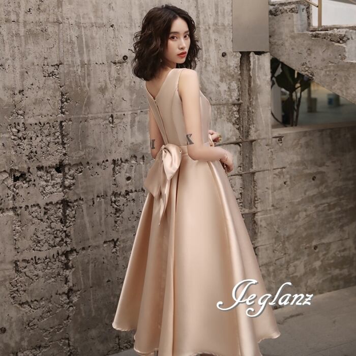 パーティ ドレス ワンピース ノースリーブ ダブルリボン Aライン (MC002)ζ☆