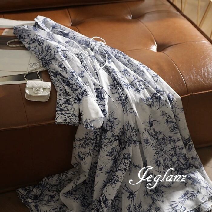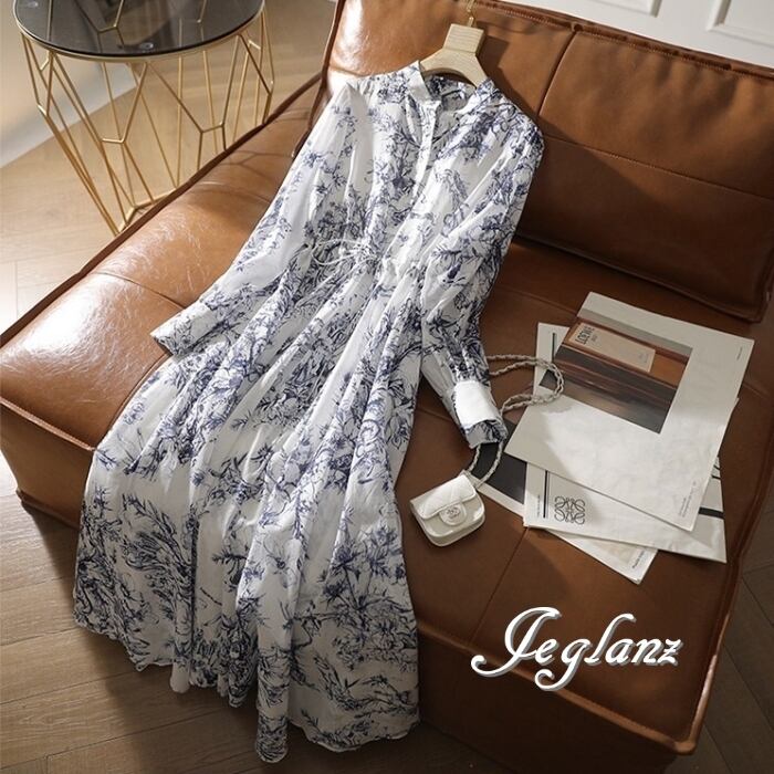 ボタニカル ワンピ 長袖 ヘンリーネック ドロスト 美シルエット (MC004)ζ☆