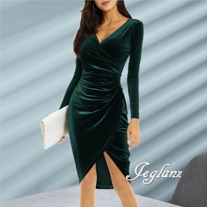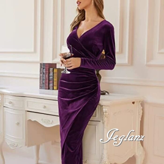 7色 ベルベット調 パーティ ワンピース 長袖 ドレス ラップ風 ♪(MC011)ζ☆