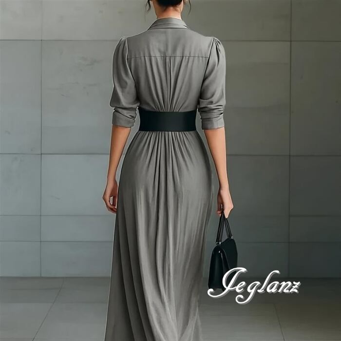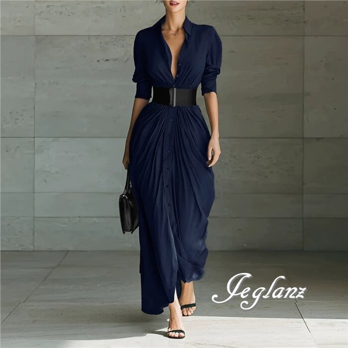 4色 マキシ シャツ ワンピース 長袖 ドレス ドレープ きれいめ( MC021)γα☆