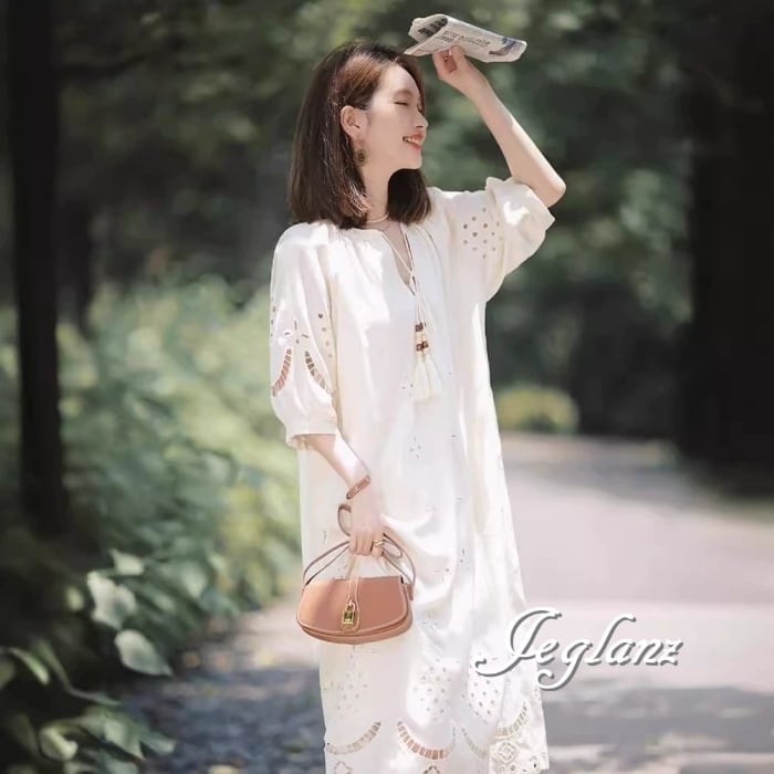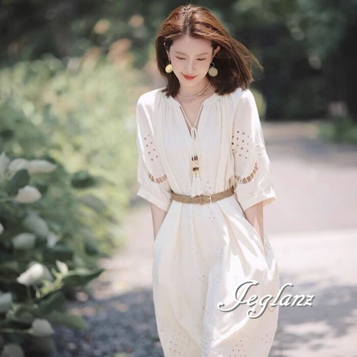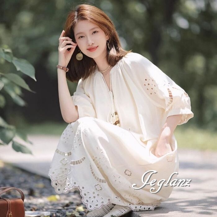 見た目・着心地ともに涼しいパンチングレースを主役にしたワンピース