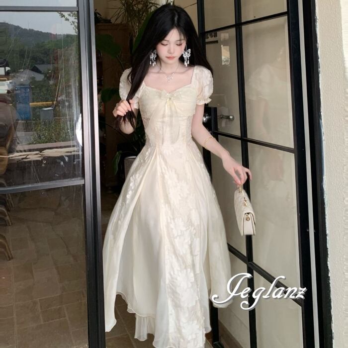 花モチーフが上品さを演出するワンピースドレス