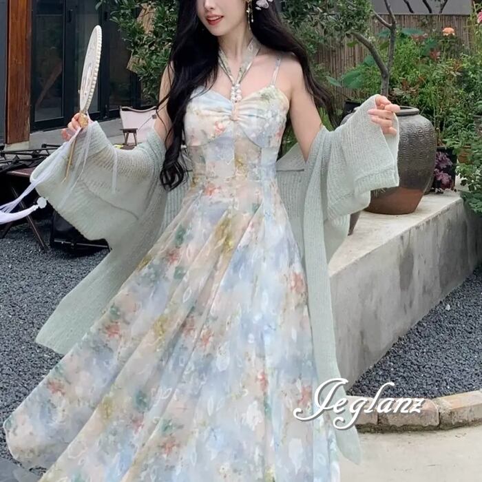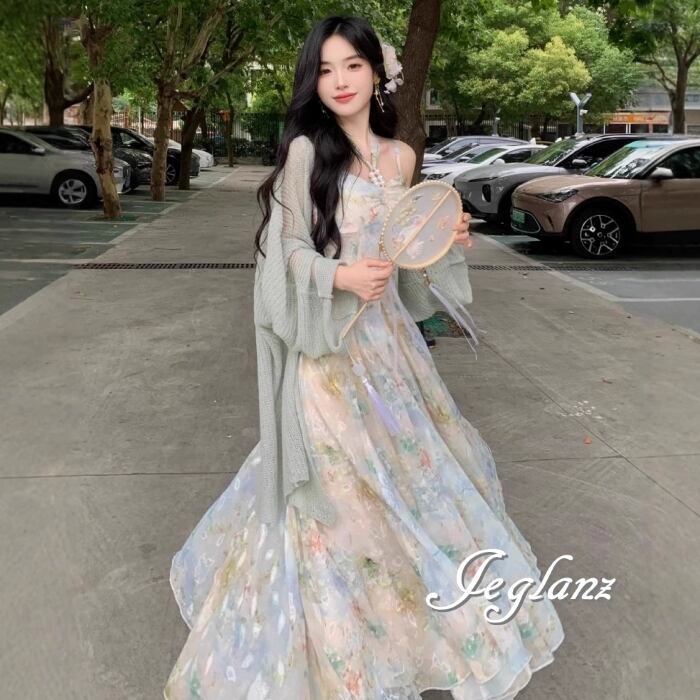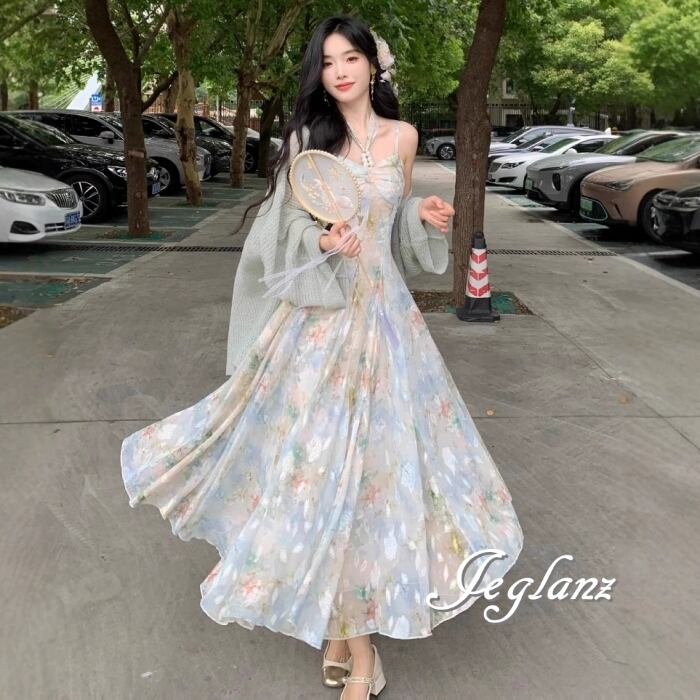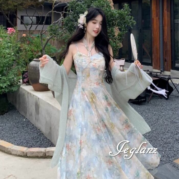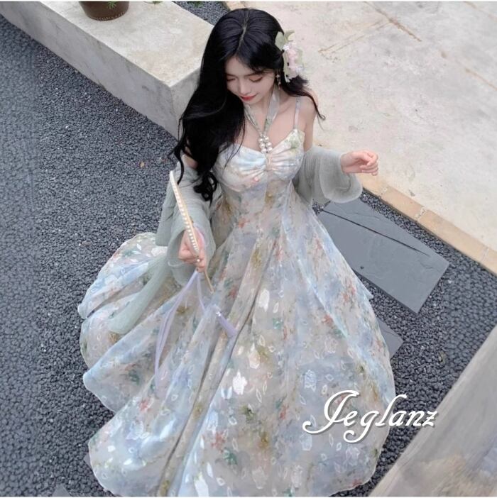 水彩タッチの花柄がアンティーク感を醸し出すキャミワンピース