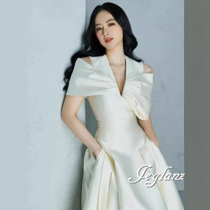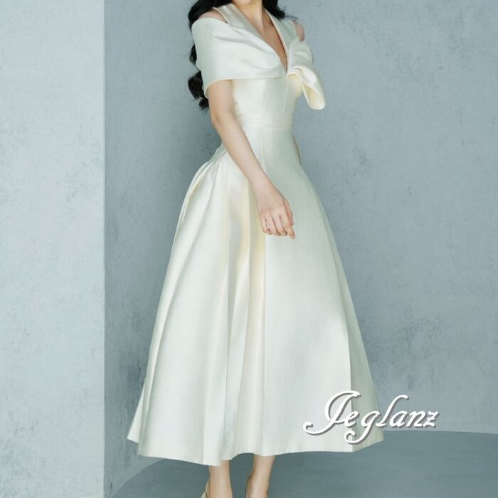 パーティドレス ワンピース アシメ タック入 ディープ Vネック (MC055)ζ☆