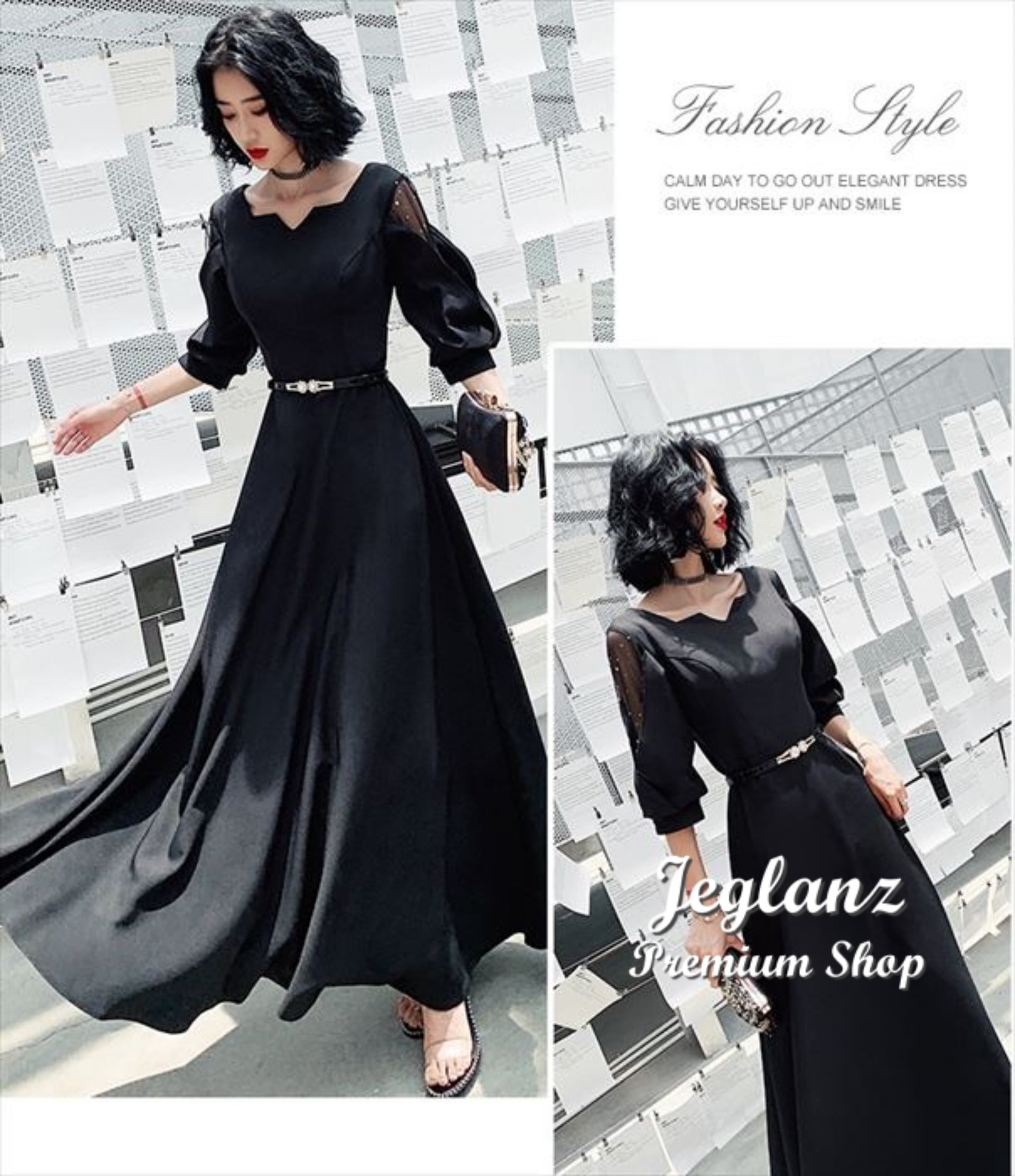 パーティ イブニングドレス ボリューム袖 異素材 レース 肌透け ビジュー (O1806)ζ