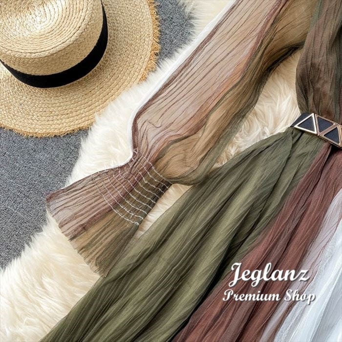 シャツ ワンピース ドレス 肌透け ベルト付き カラーブロック (Z1672)γ