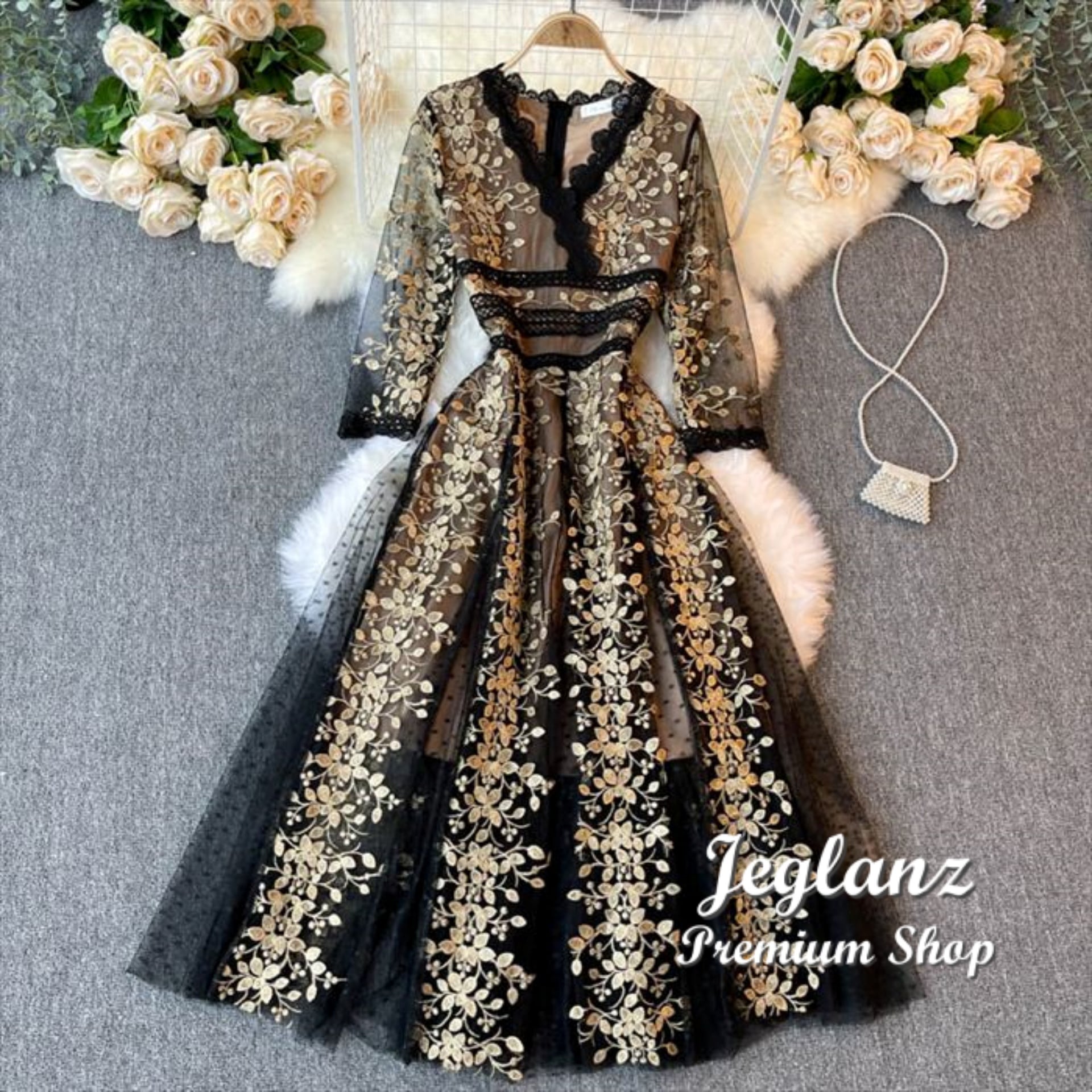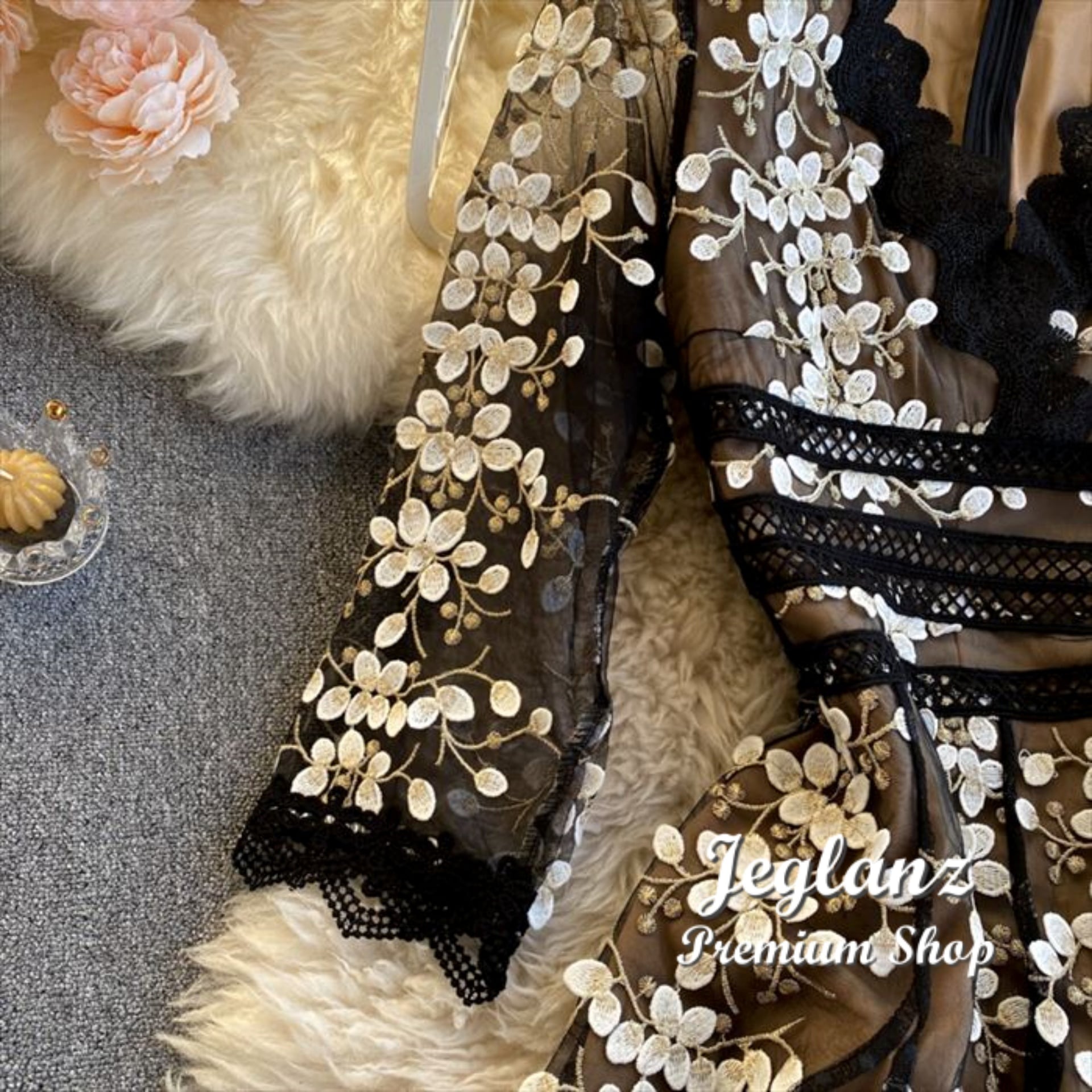 3色 パーティ ドレス バイカラー Vネック 花 モチーフ クラシック ♪ (O0858)ζ