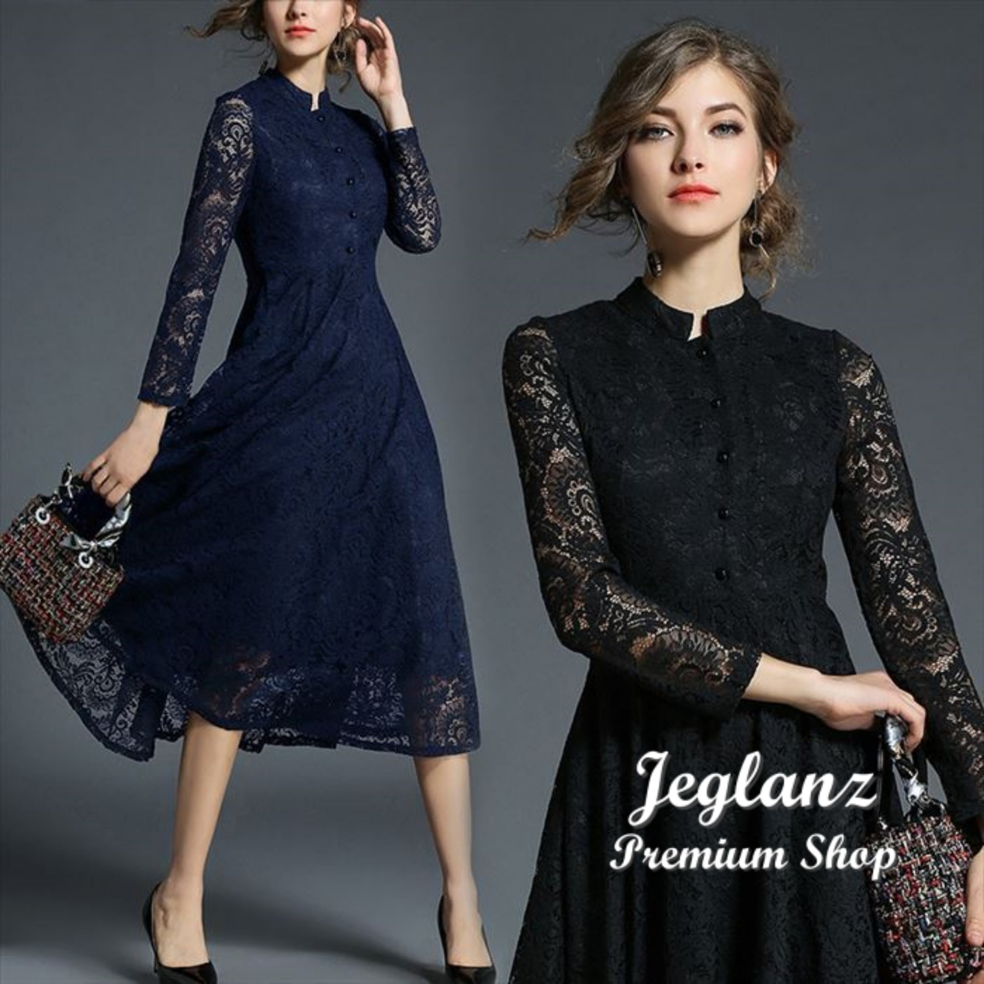 上品 ワンピース ドレス ボタン 総レース 肌透け 映えワンピ 5色 (O1808)ζ