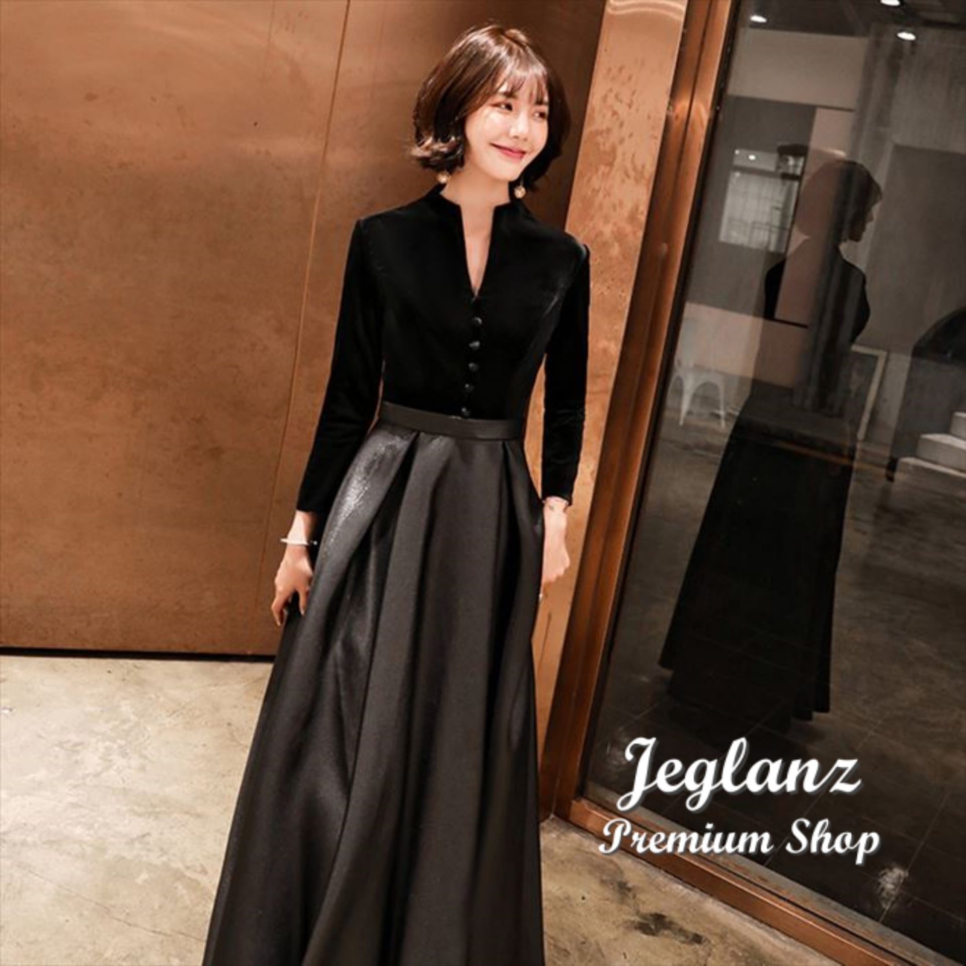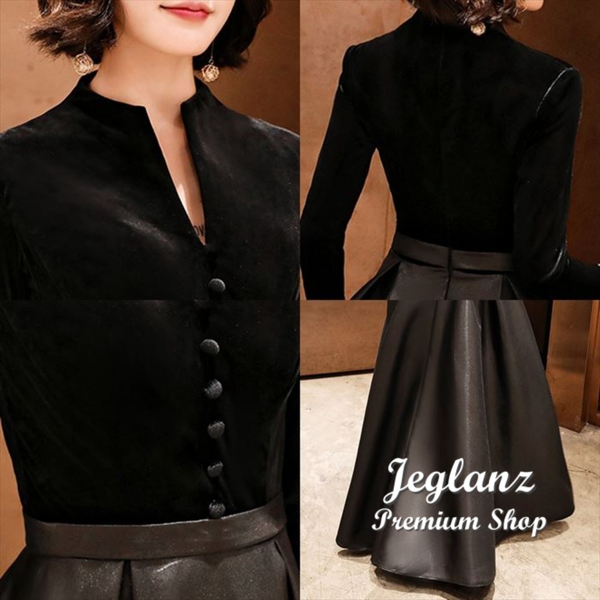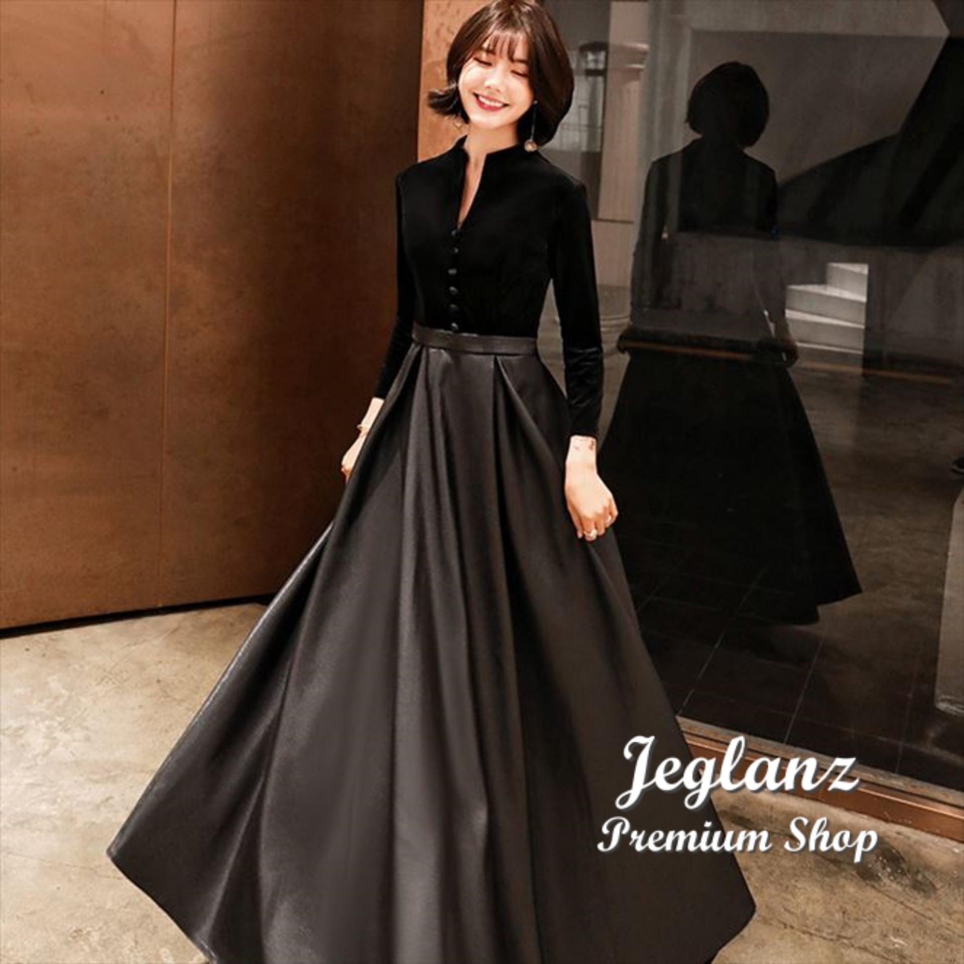 気品 イブニングドレス 異素材 ミックス ベロア調 キーネック ♪ (O0929)η
