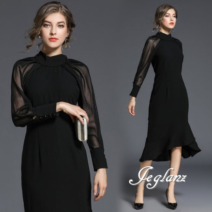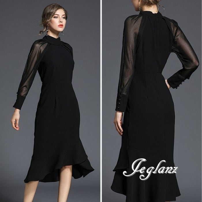 ワンピース ドレス フィッシュテール 透け感 切替 マーメイドライン ♪ (Z0952)ζ