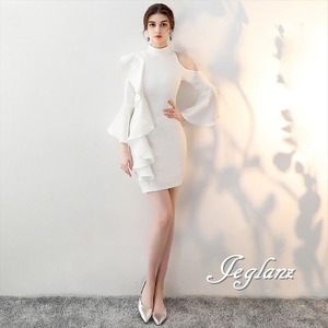 パーティ ドレス ワンピース ラッフル フリル タイト スリム 着映え 4色 (M0085)ζ☆