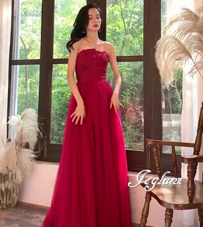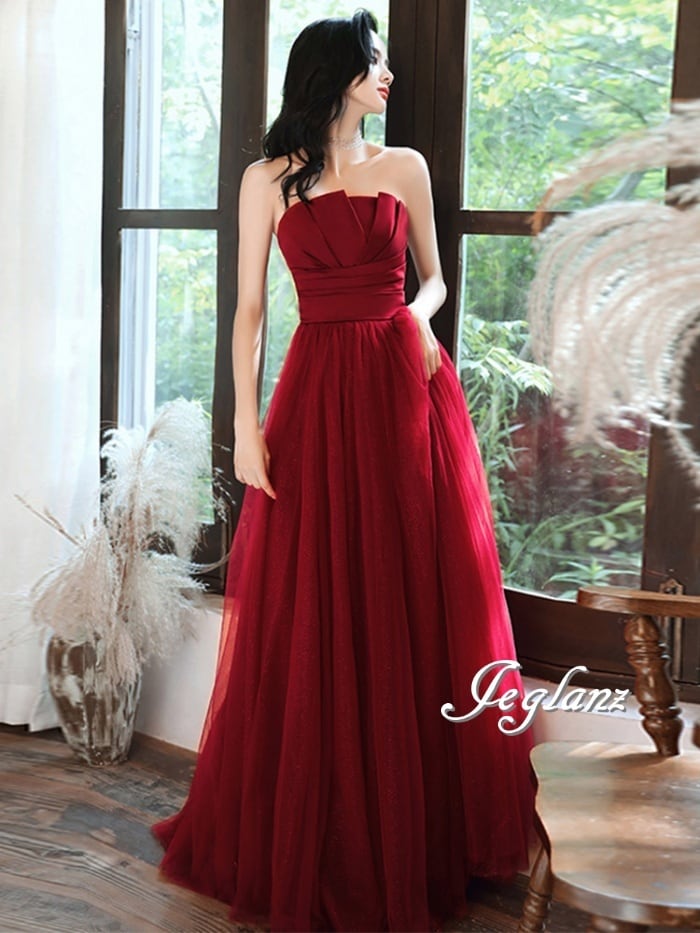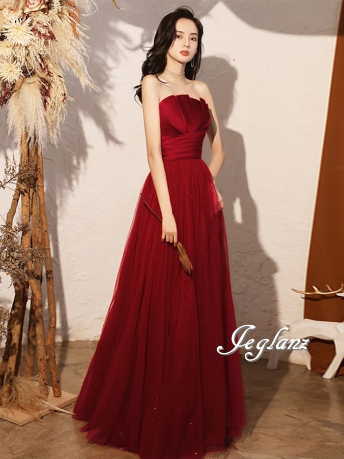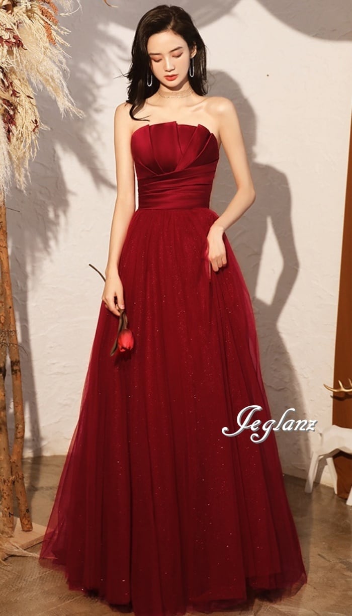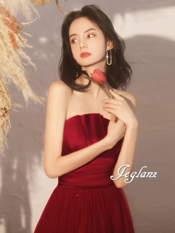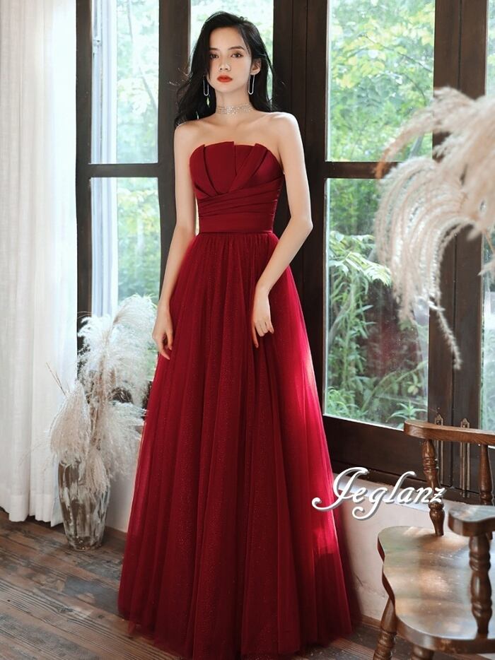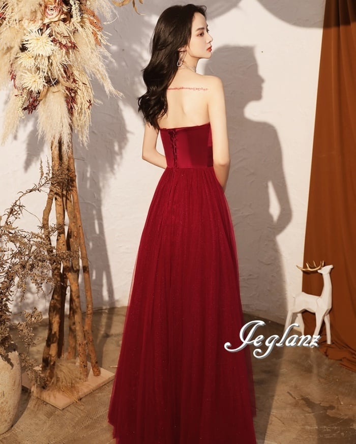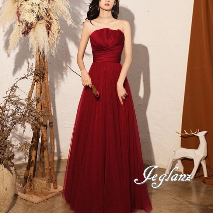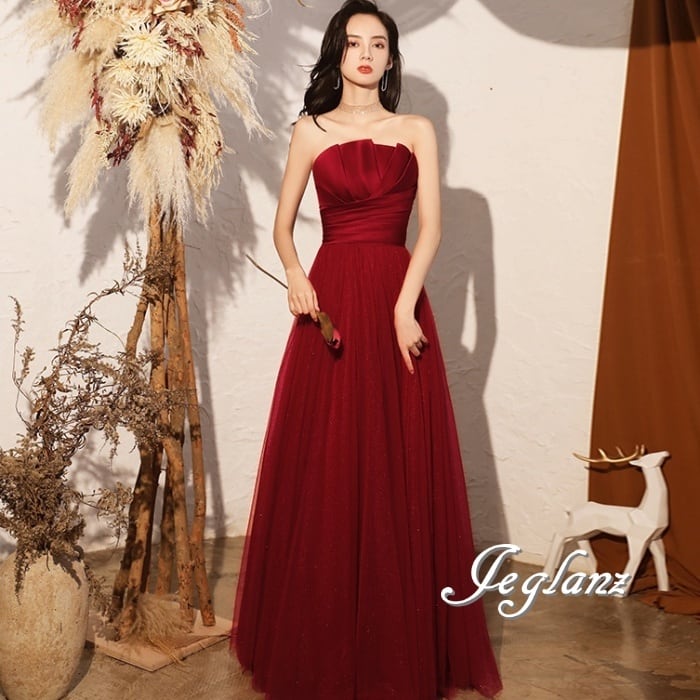 パーティ イブニング カラードレス ベアトップ 背中 編み上げ 肌見せ ♪(M0760)ζ☆