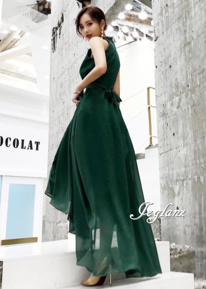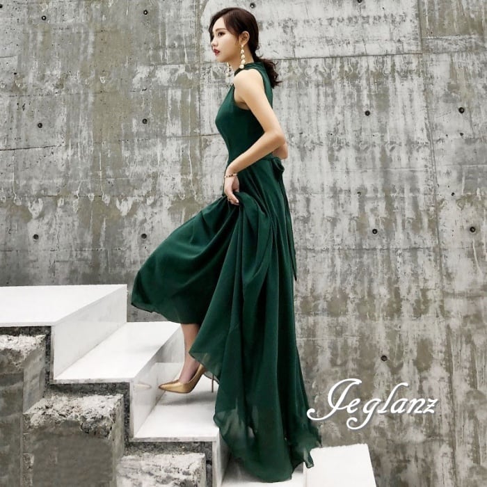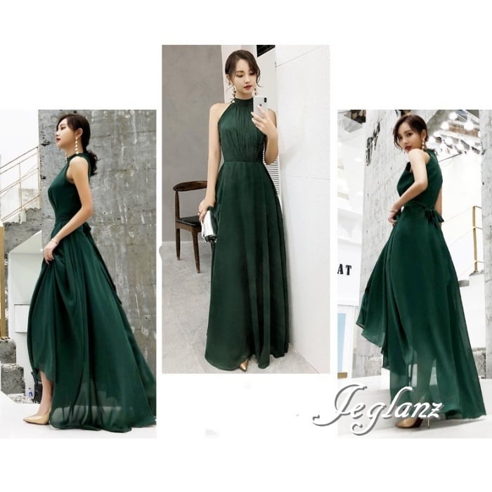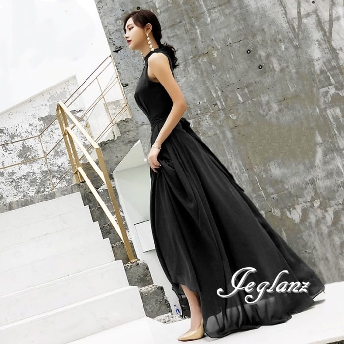 3色 イブニングドレス ホルターネック 共ベルト 大人 シンプル(Z0932)