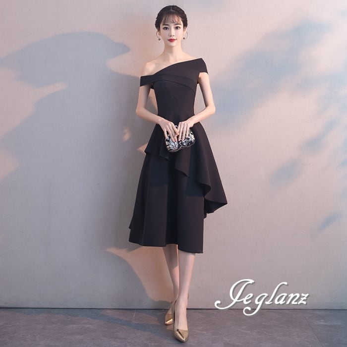 6色 パーティ ドレス ワンピース オフショル アシンメトリー 肌見せ(Z1363)ζ