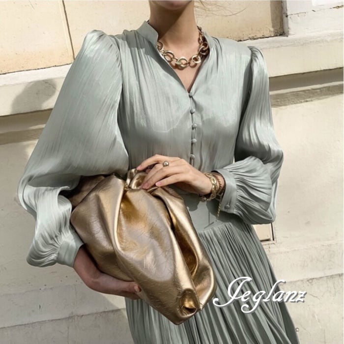 3色 パーティ ドレス ワンピース プリーツ 共ベルト ロング丈 光沢感(M0400)ζ