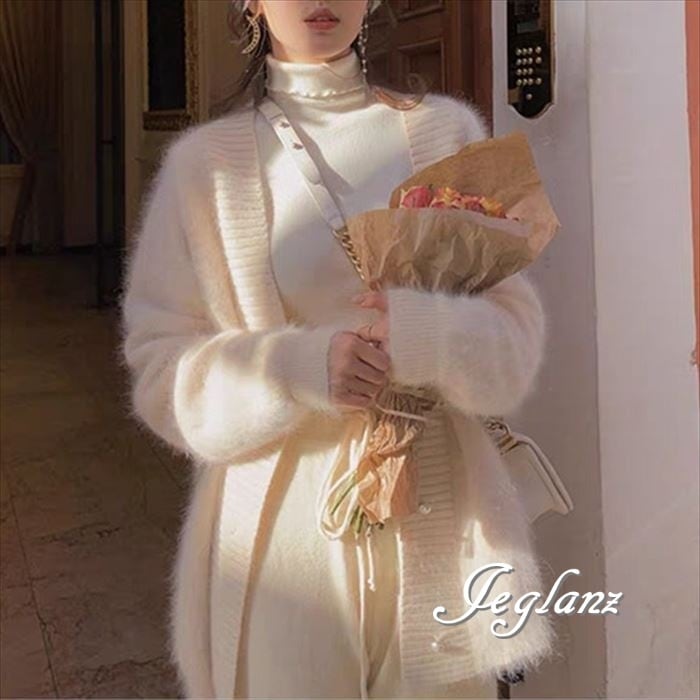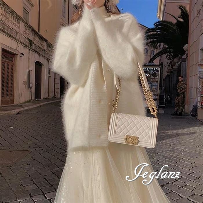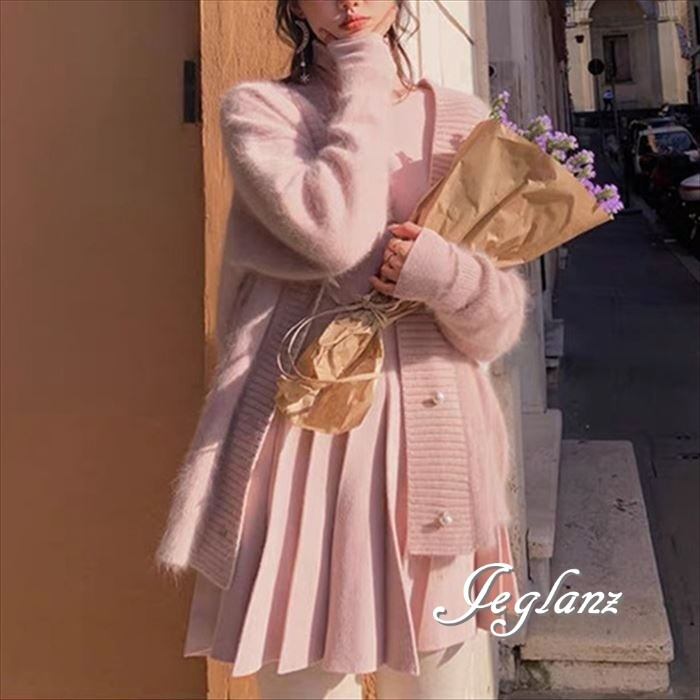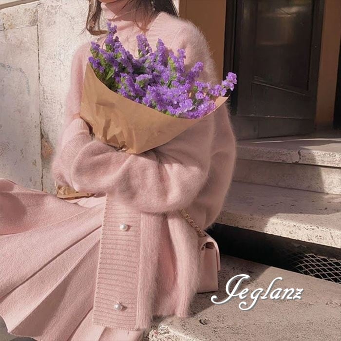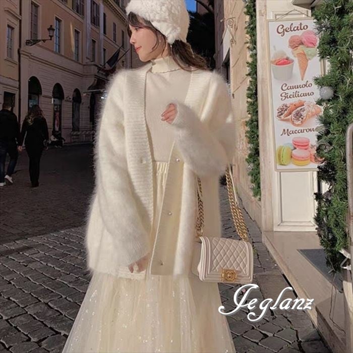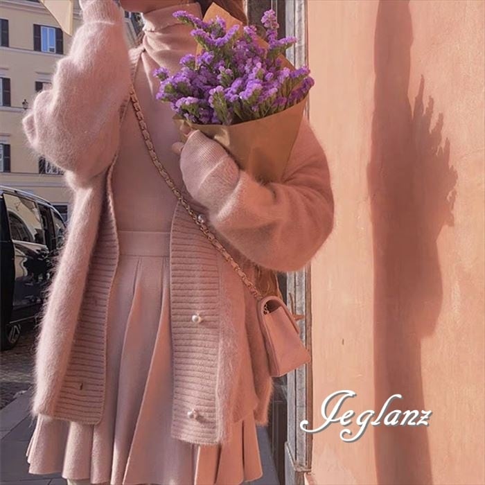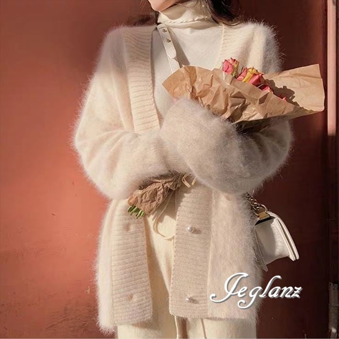 2色 ニット カーディガン モヘア 羽織り パール付き ゆったり 高見え(M1616)τ