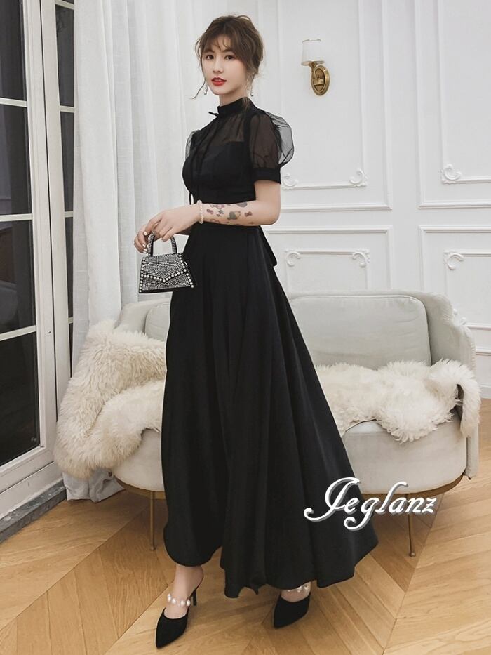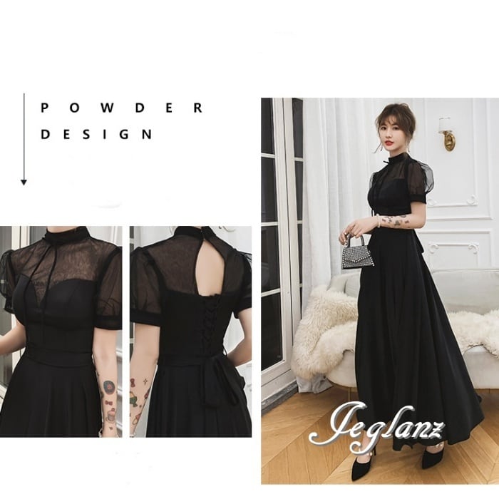 パーティ ドレス ワンピース ハイネック ランタン袖 シアー感 ♪ (M0637)★ ζ